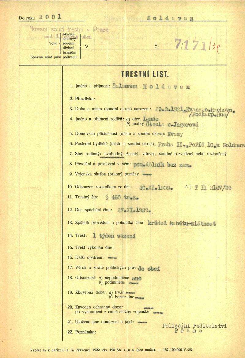 National archives Prague > Police Directorate Prague > 1941-1950 > M > Moldavan Šalomon