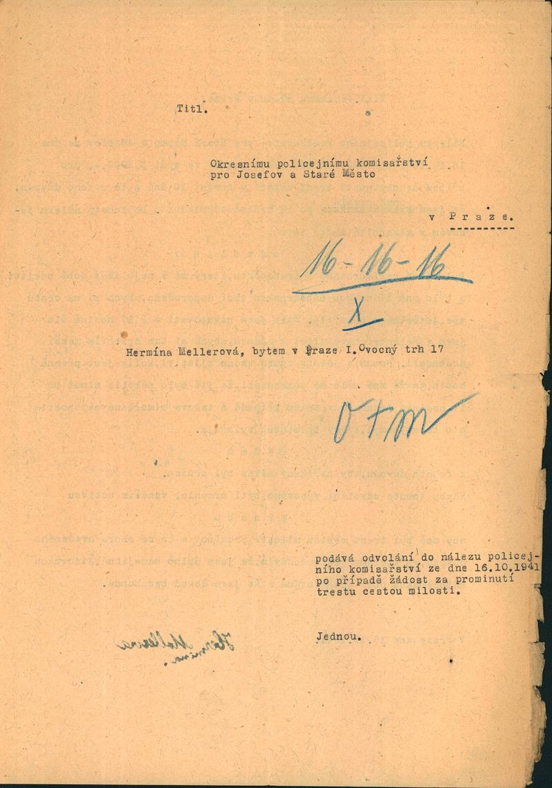 For publication purposes, contact the National Archives in Prague, where the original document is located. The document was digitized by the Terezín Initiative Institute, the Terezín Album project