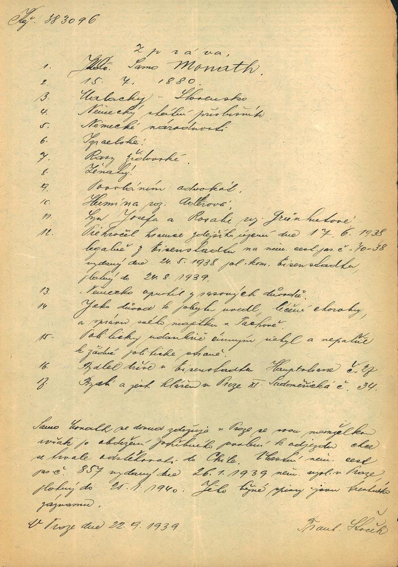 National archives Prague > Police Directorate Prague > 1941-1950 > M > Monath Samuel