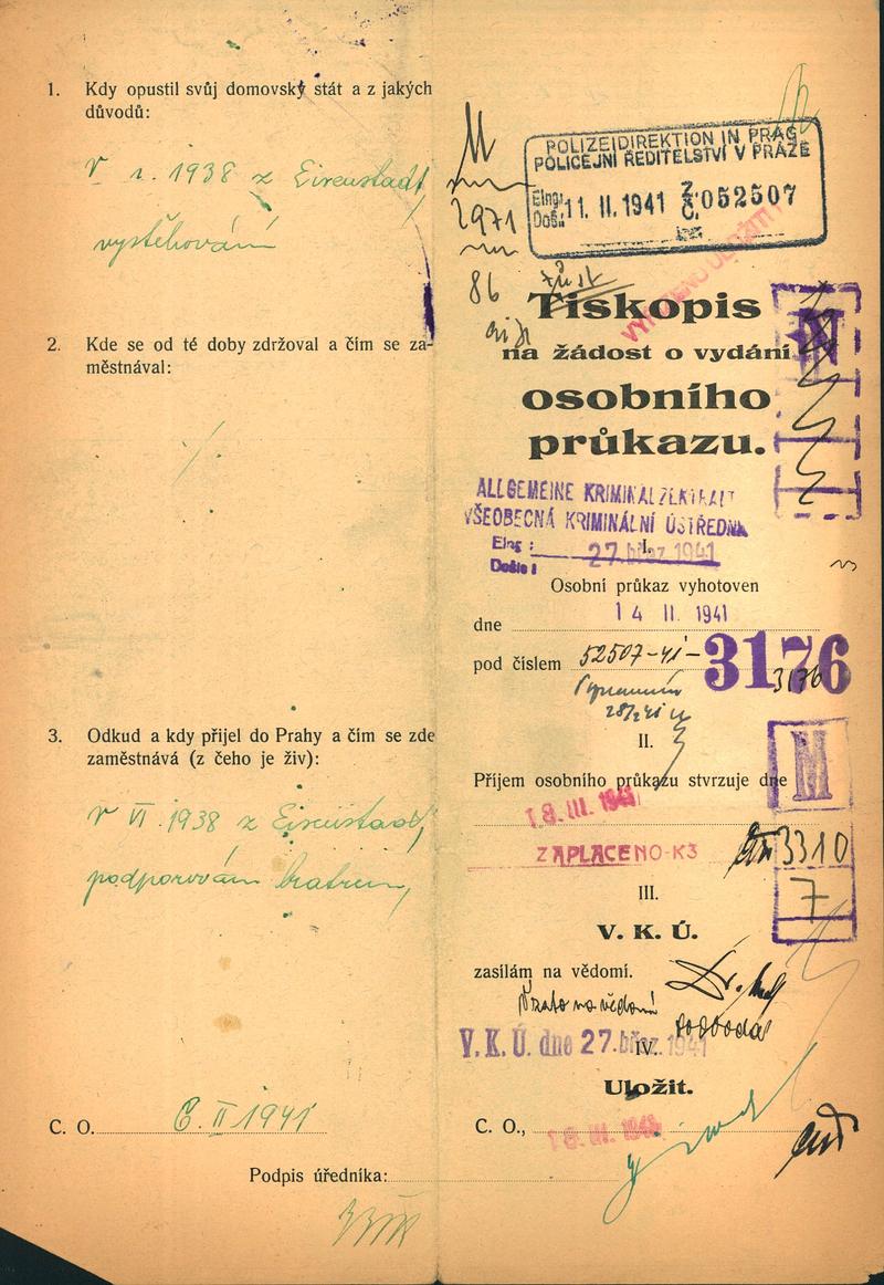 Monath Samuel: Žádost o vydání občanské legitimace