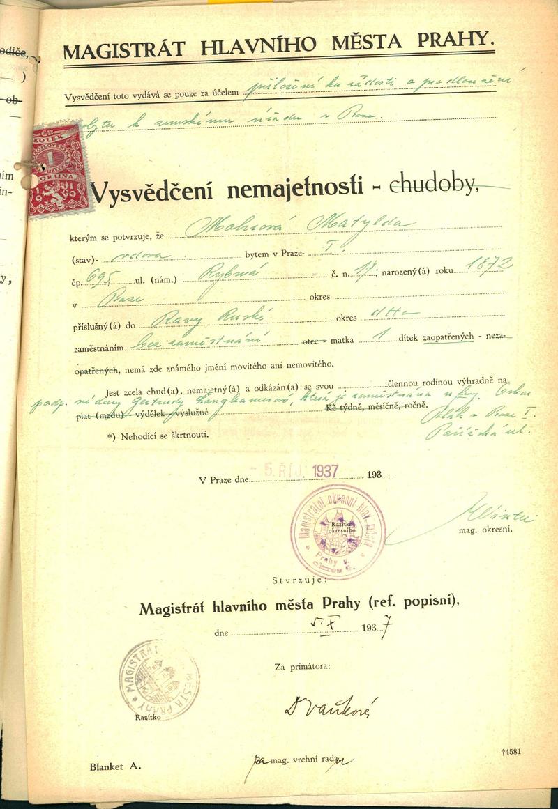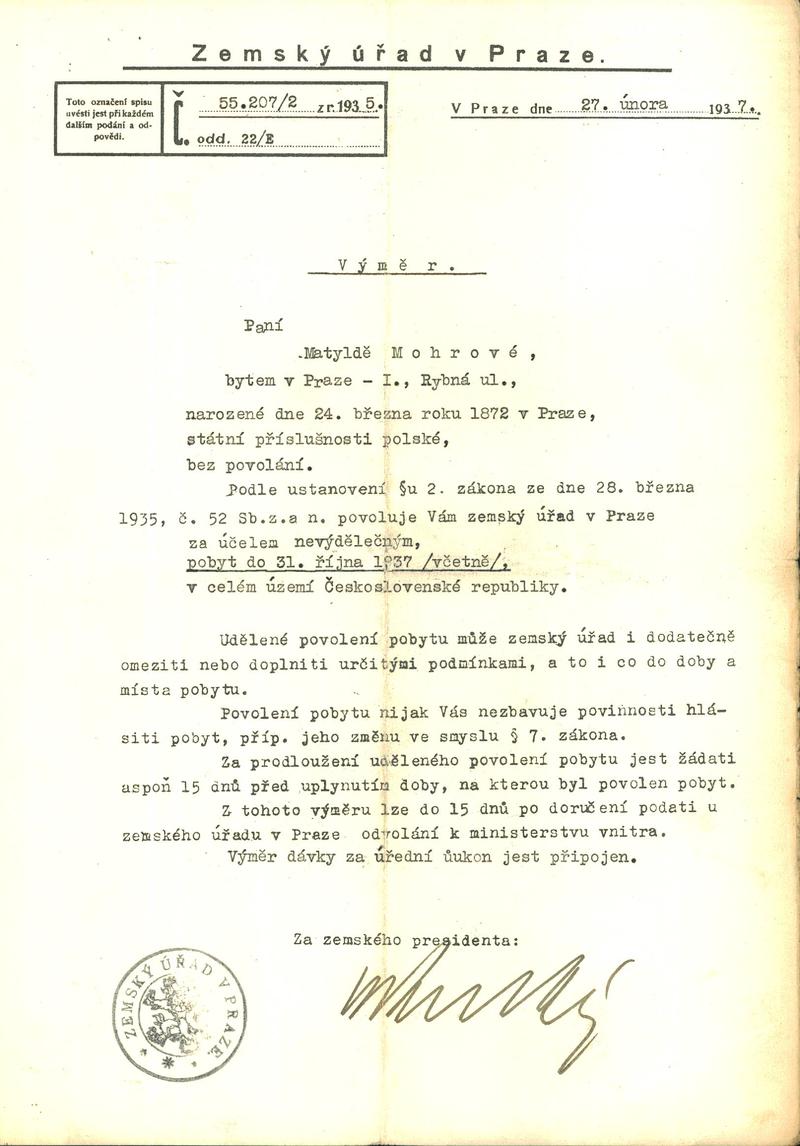 National archives Prague > Police Directorate Prague > 1941-1950 > M > Mohrová Matylda