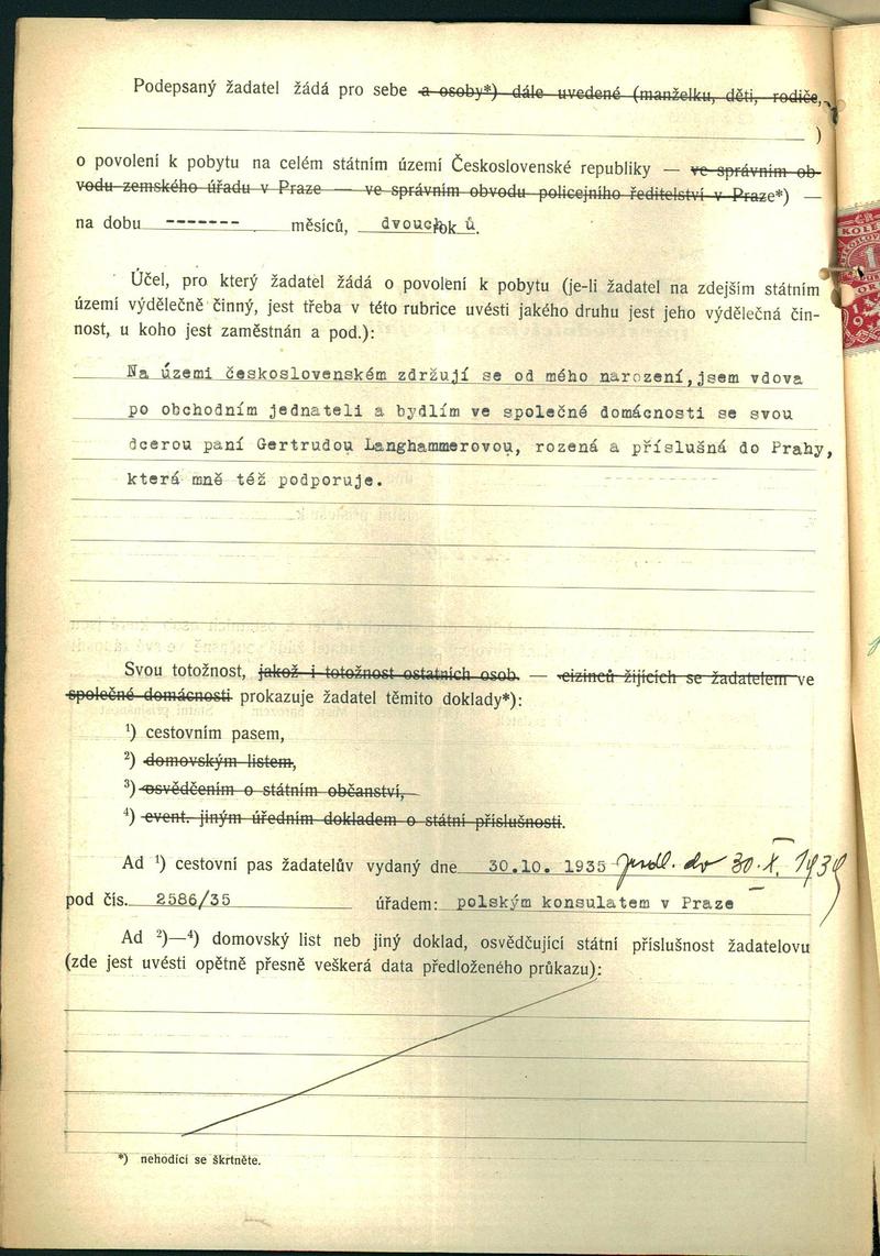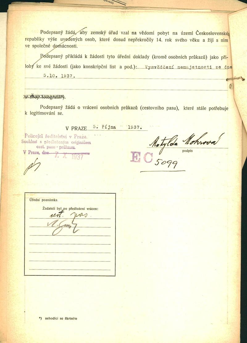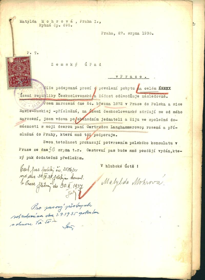 Mohrová Matylda: Žádost o povolení pobytu
