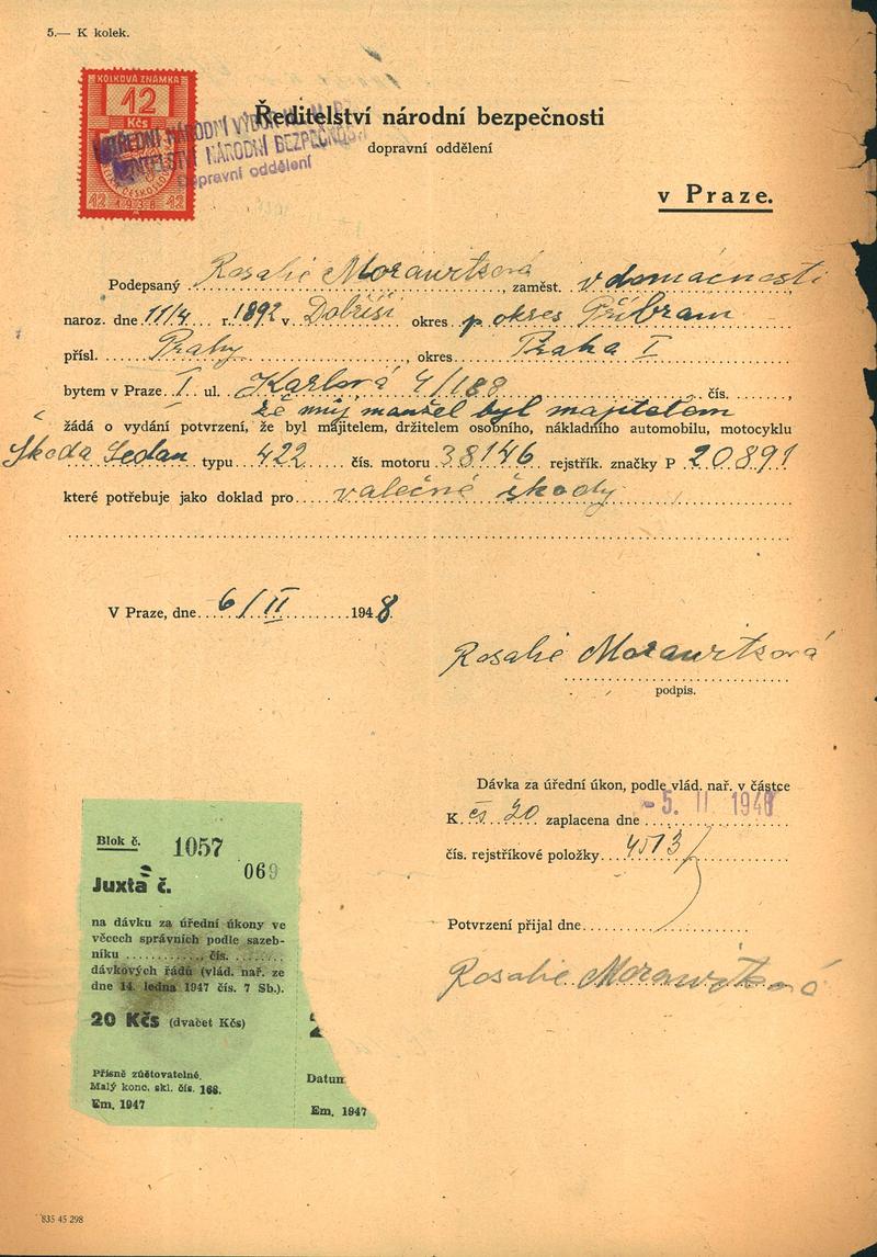 Morawitz Oskar: Žádost o vydání potvrzení o válečné škodě