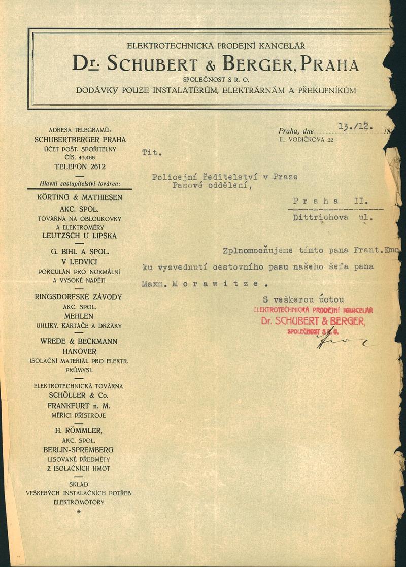 Morawitz Max: Plná moc k vyzvednutí cestovního pasu