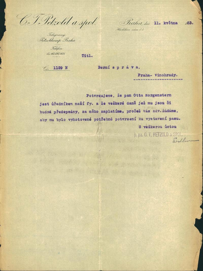 Morgenstern Otto: Žádost o vystavení daňového osvědčení
