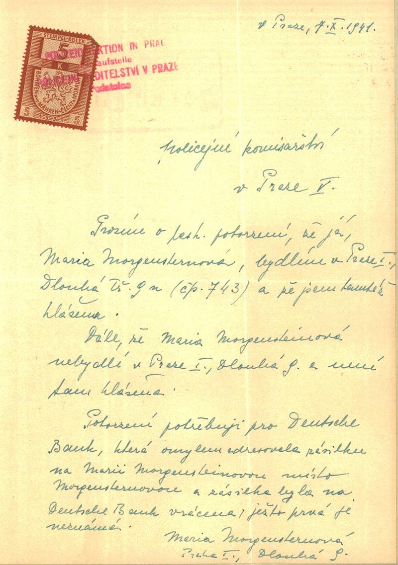 National archives Prague > Police Directorate Prague > 1941-1950 > M > Morgensternová Marie