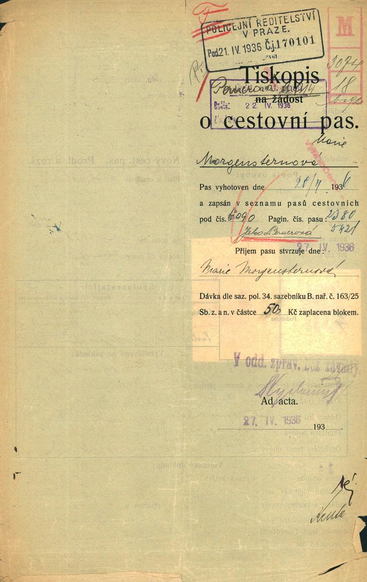 Morgensternová Marie: Žádost o vydání cestovního pasu