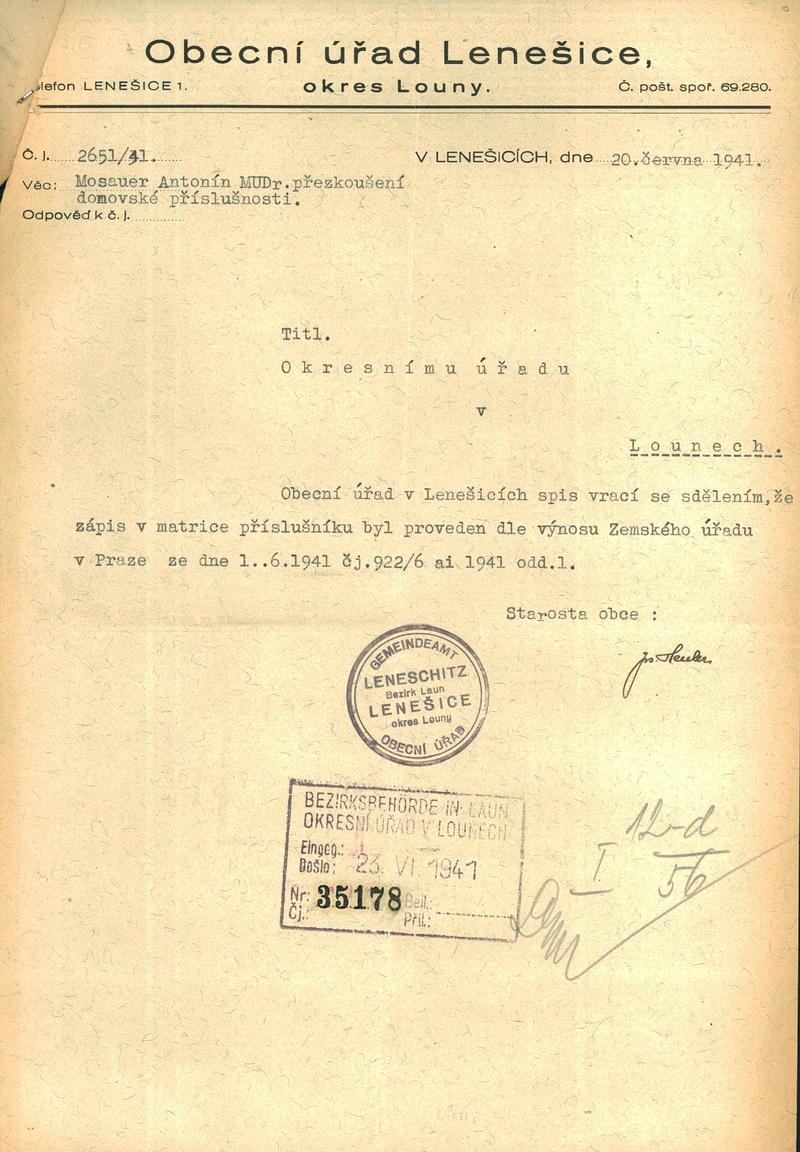 Mosauer Antonín: Šetření o domovské příslušnosti