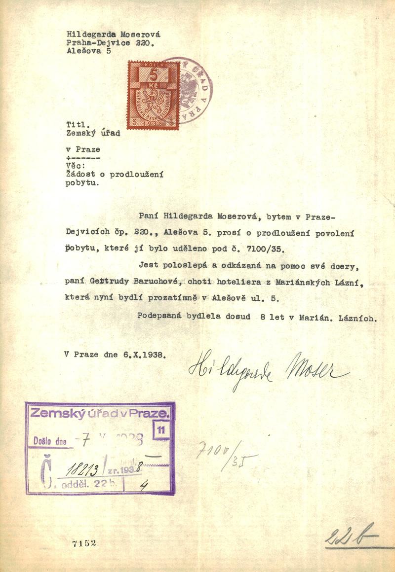 Moserová Hildegard: Žádost o prodloužení povolení pobytu