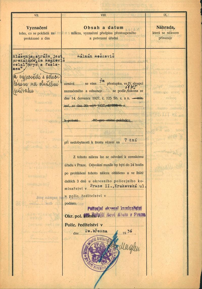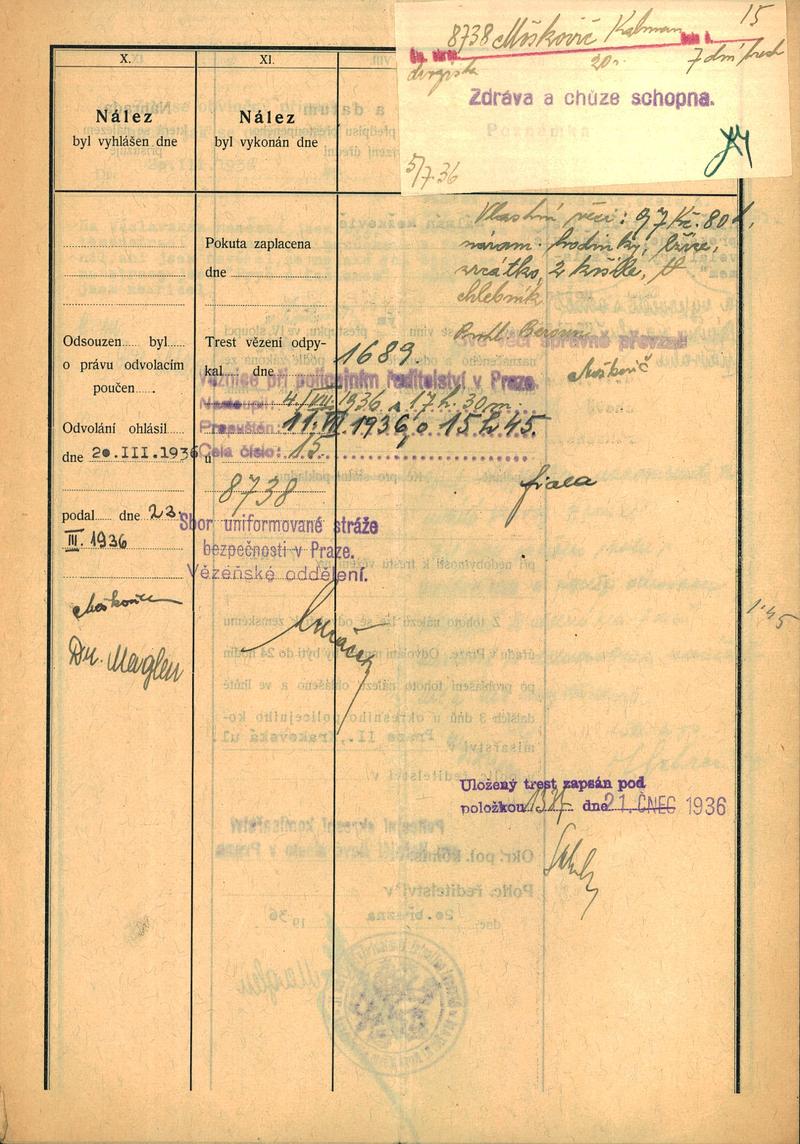 National archives Prague > Police Directorate Prague > 1941-1950 > M > Moškovič Kalman