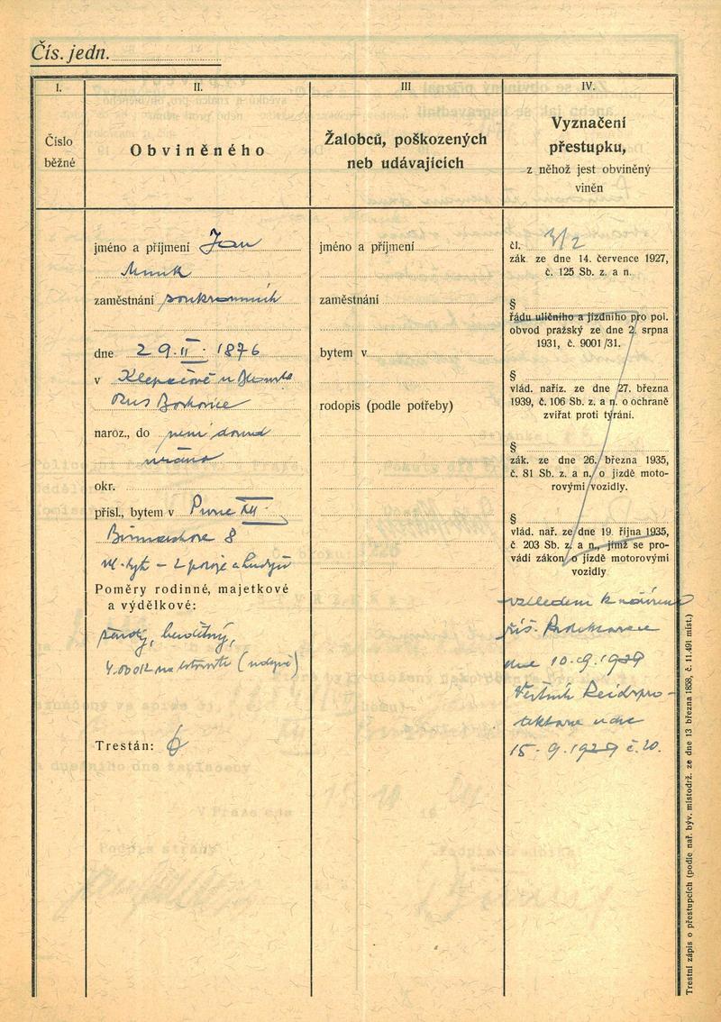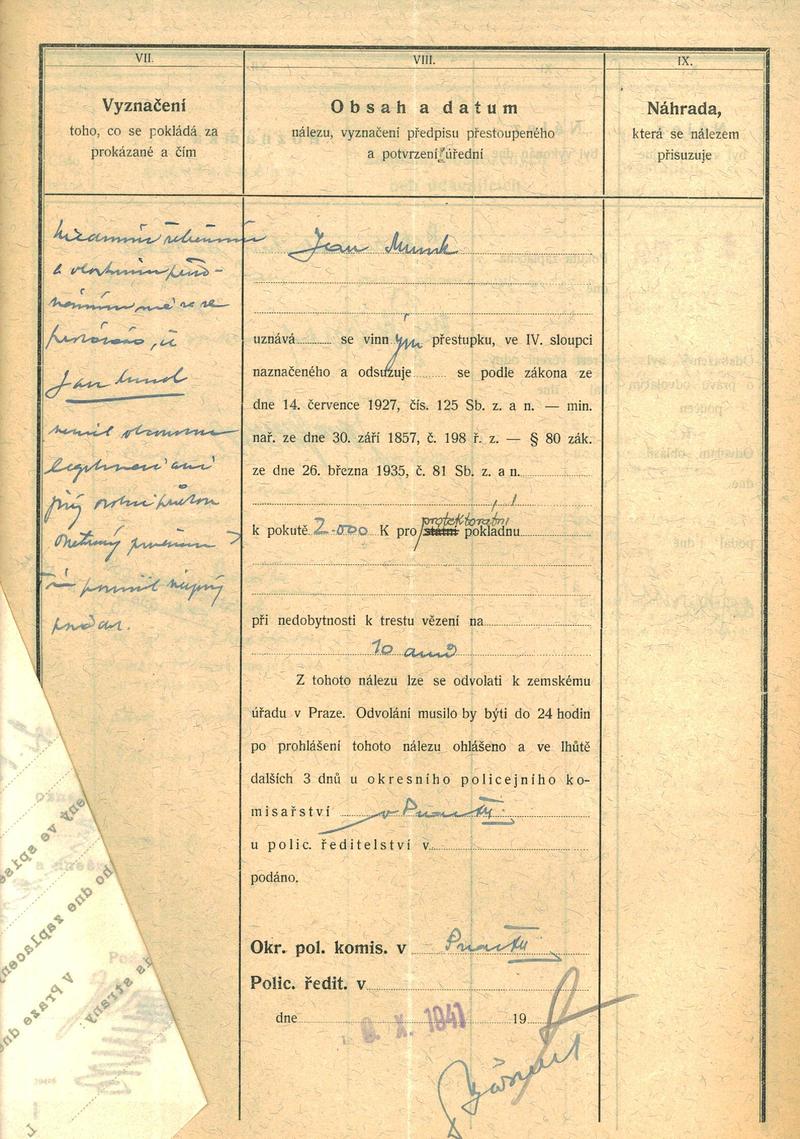 National archives Prague > Police Directorate Prague > 1941-1950 > M > Munk Jan