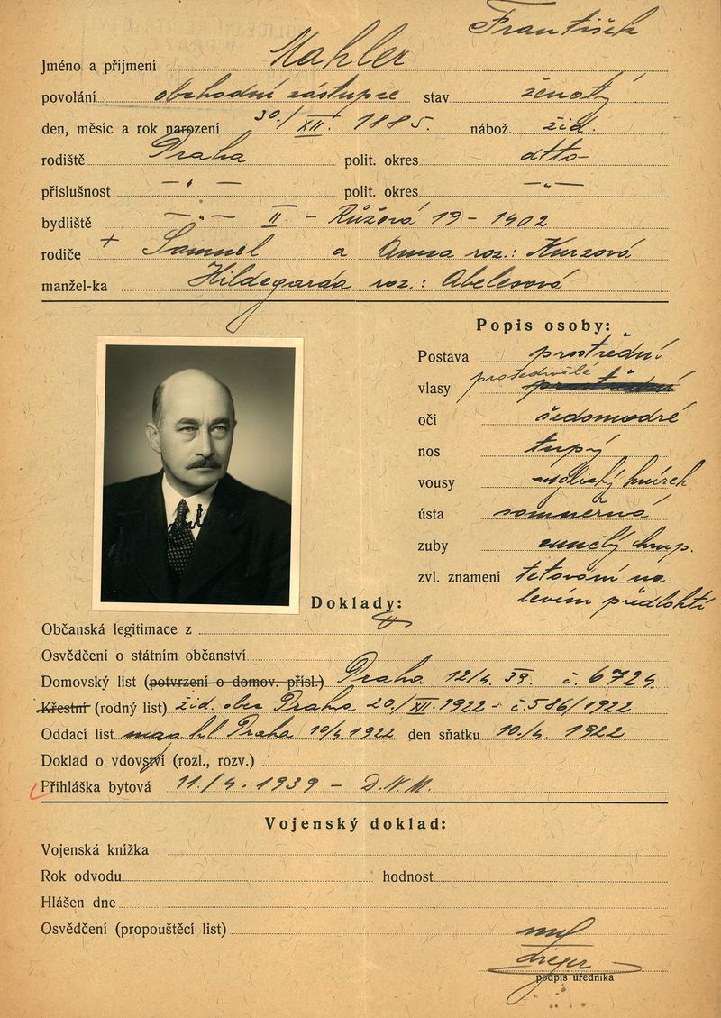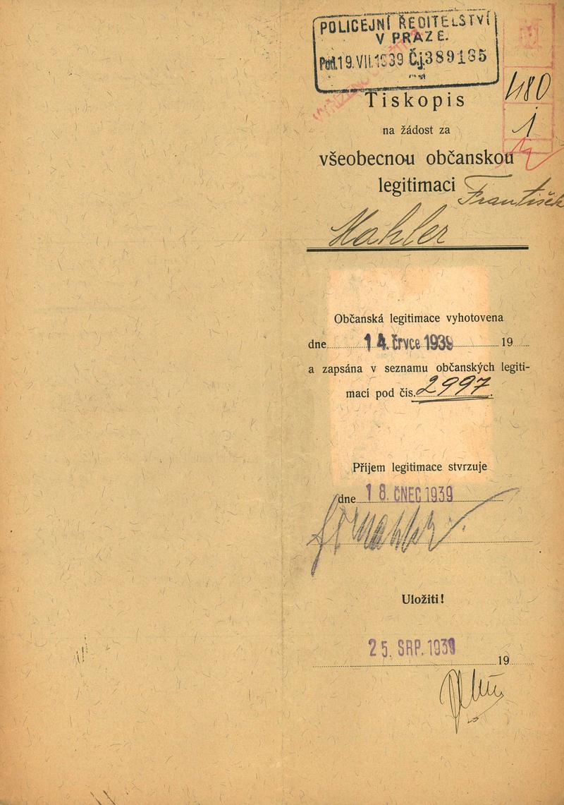 Mahler František: Žádost o vydání občanské legitimace