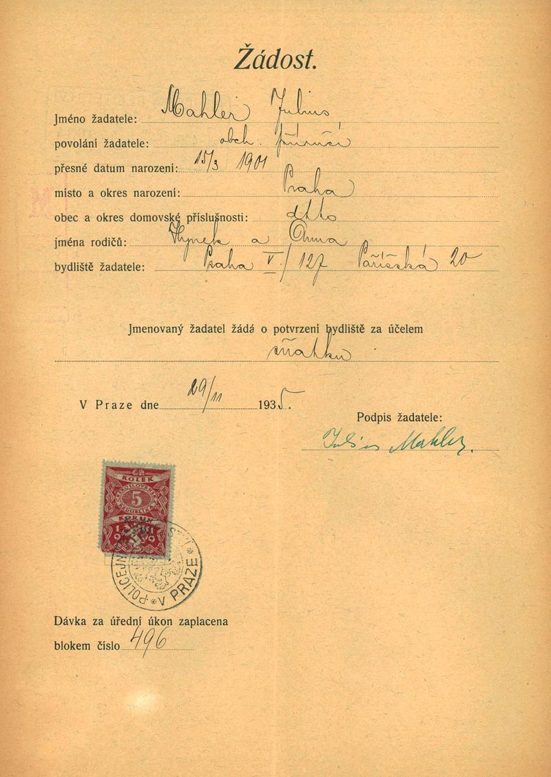 National archives Prague > Police Directorate Prague > 1941-1950 > M > Mahler Julius
