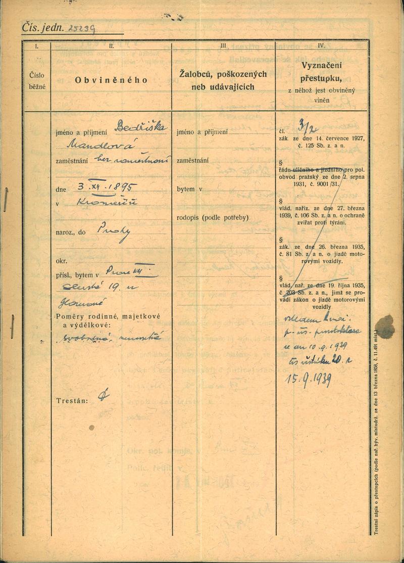 National archives Prague > Police Directorate Prague > 1941-1950 > M > Mandlová Bedřiška