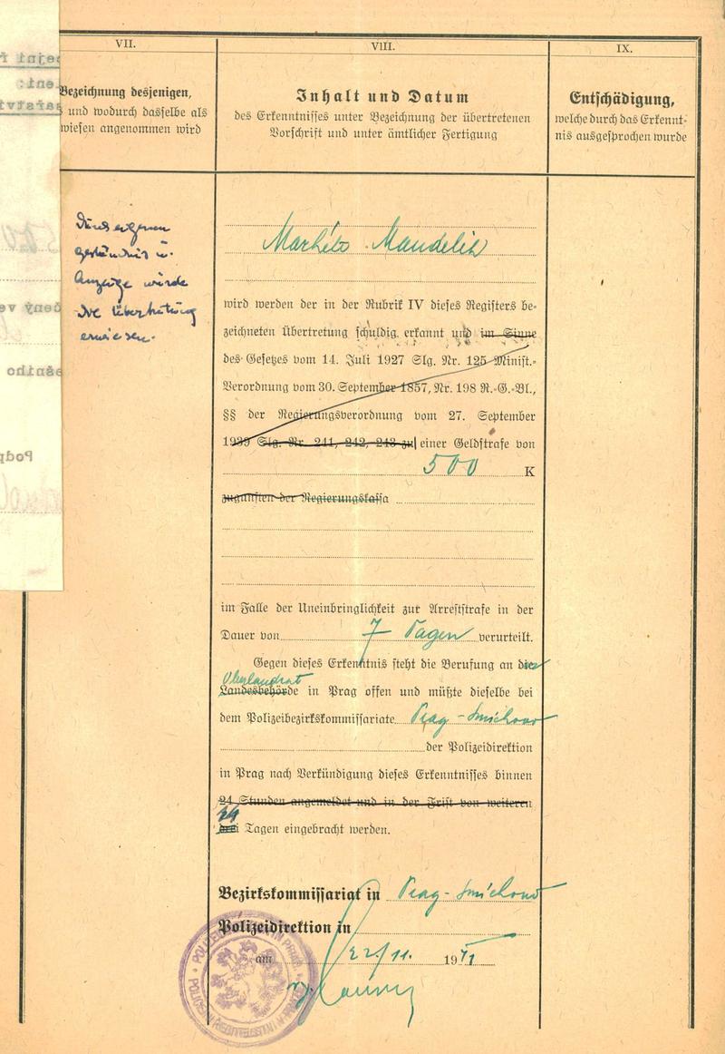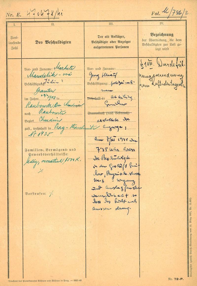 National archives Prague > Police Directorate Prague > 1941-1950 > M > Mandeliková Markéta