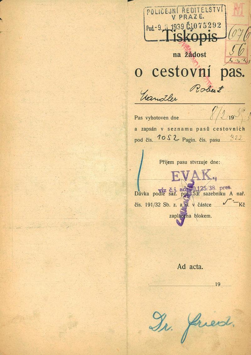 Mandler Robert: Žádost o vydání prozatímního cestovního pasu
