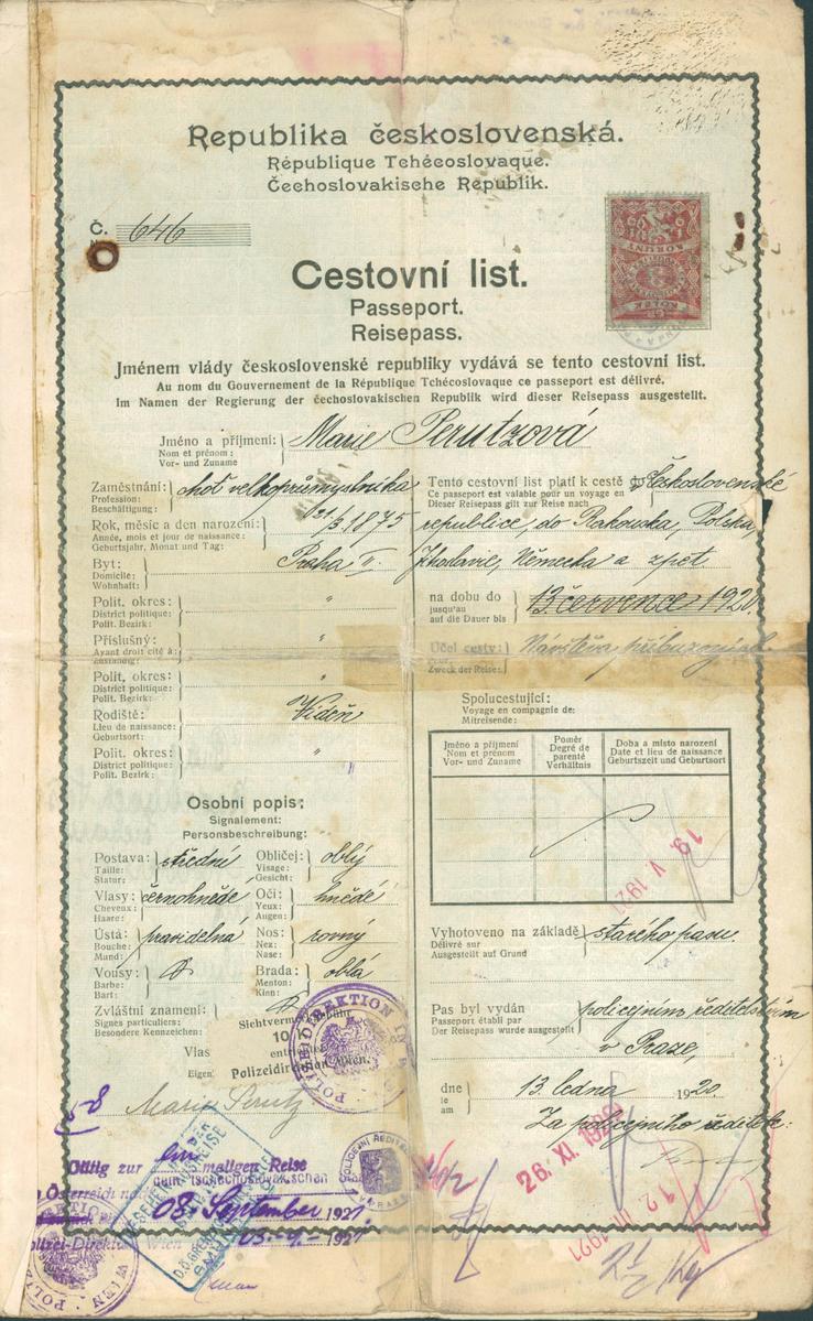 Perutzová Marie: Cestovní pas