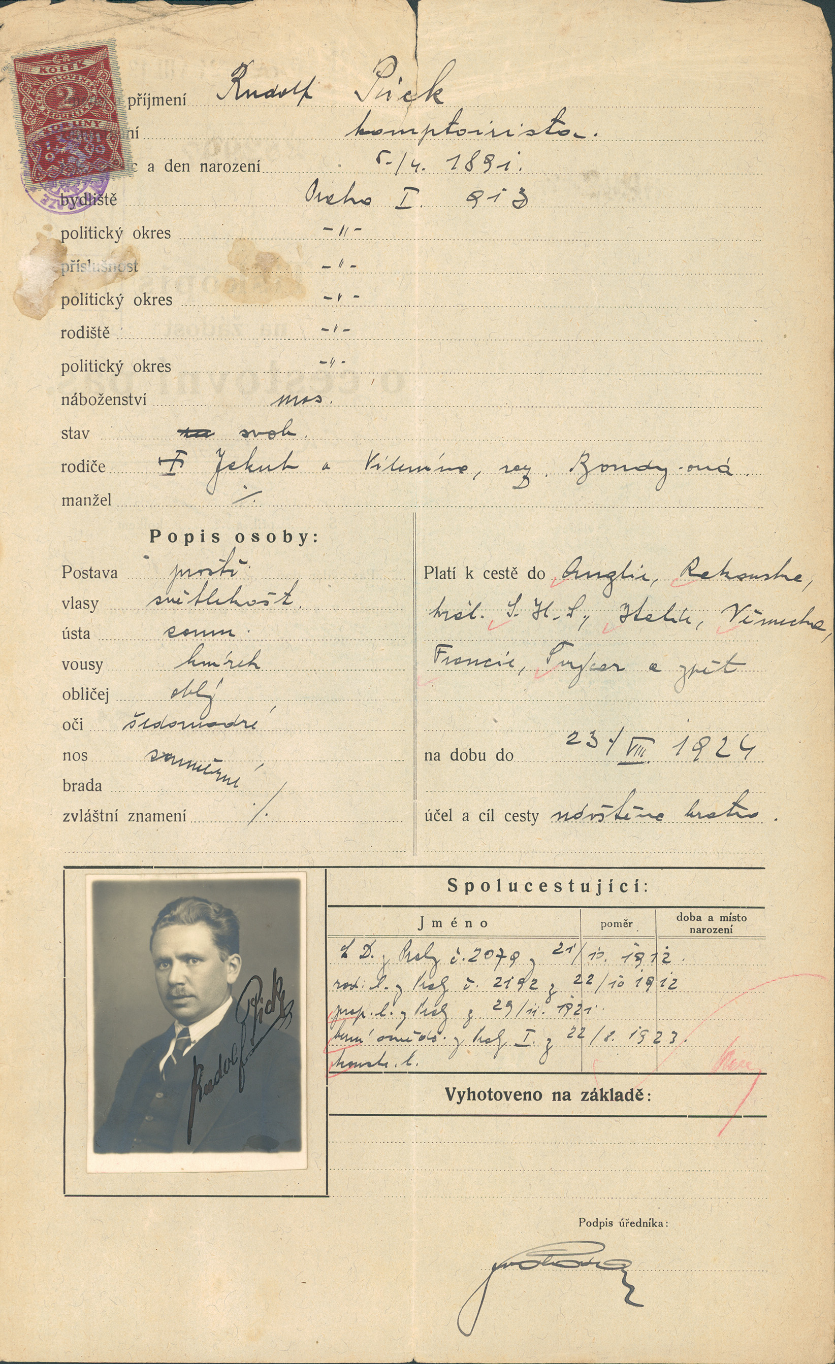 Pick Rudolf: Žádost o vydání cestovního pasu