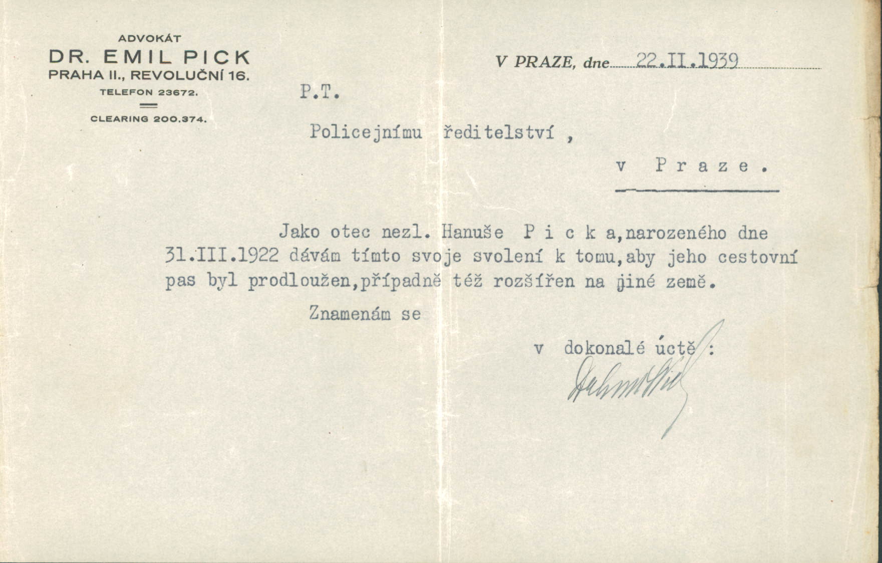 Pick Hanuš: Souhlas s prodloužením a rozšířením cestovního pasu