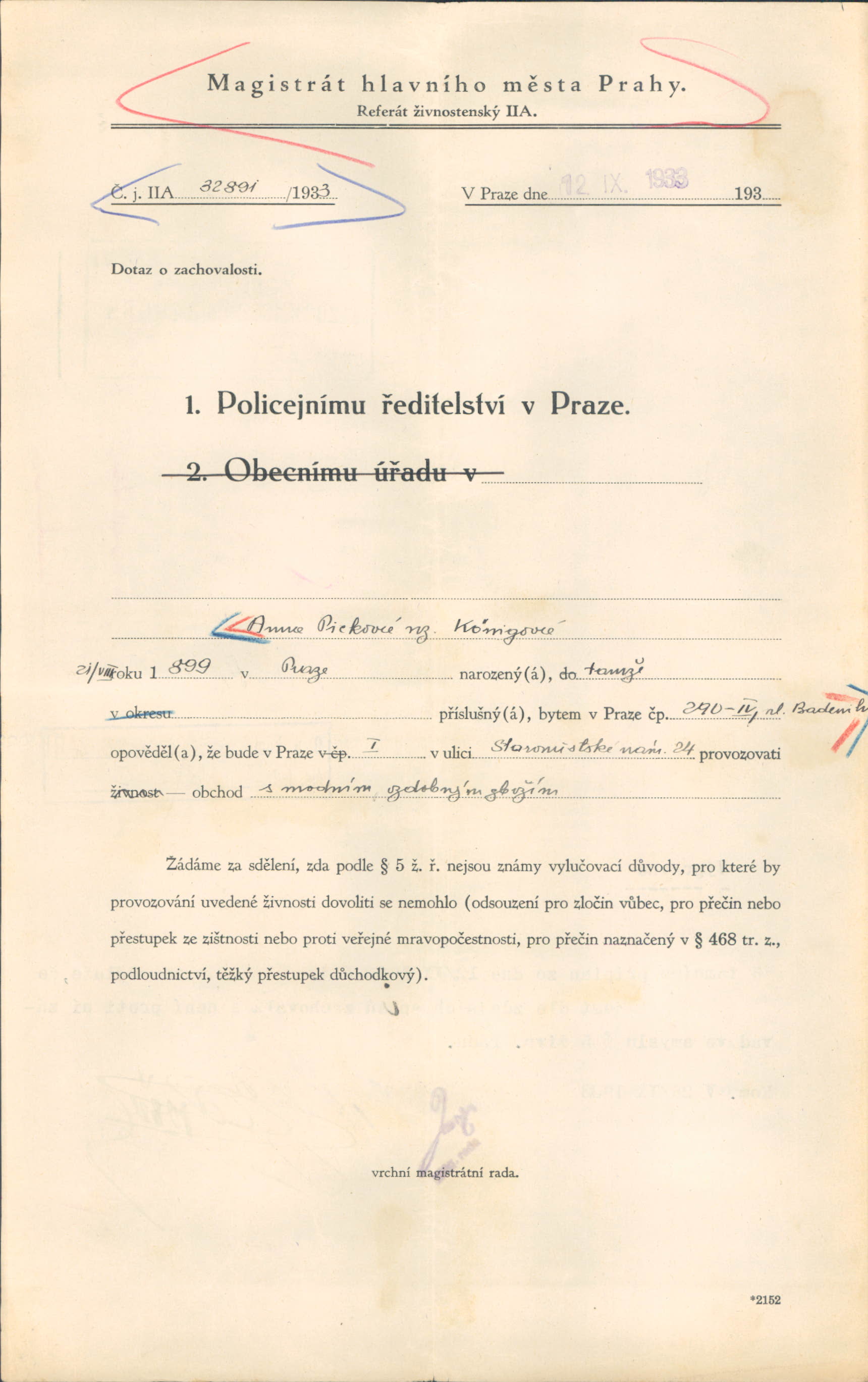 Picková Anna: Povolení k provozování živnosti