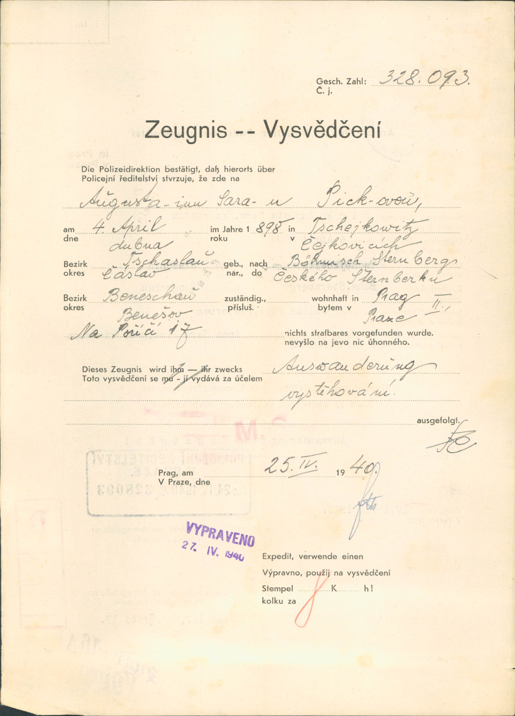 This database contains the names and fates of those who were deported from the territory of today’s Czech Republic, be it their homeland or may they have been deported to the Theresienstadt ghetto before from different european countries. Further, it contains basic information on those men, women and children, most of whom were Roma or Sinti, who died as prisoners of the so-called „Gypsy camp I“ Lety u Písku.