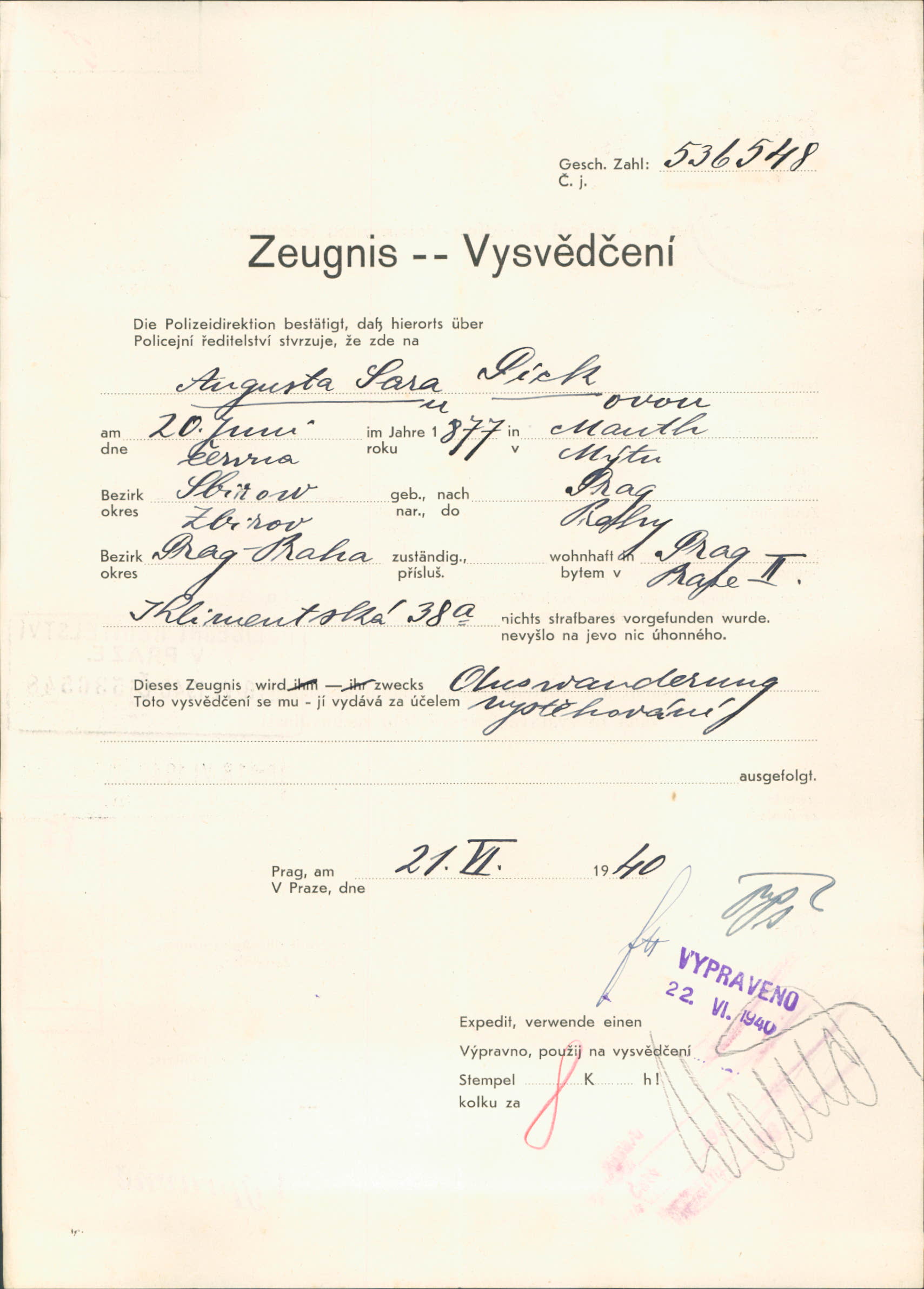 This database contains the names and fates of those who were deported from the territory of today’s Czech Republic, be it their homeland or may they have been deported to the Theresienstadt ghetto before from different european countries. Further, it contains basic information on those men, women and children, most of whom were Roma or Sinti, who died as prisoners of the so-called „Gypsy camp I“ Lety u Písku.