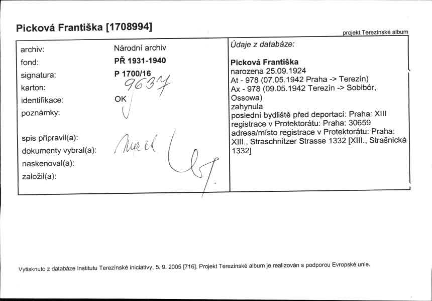 Picková Františka: NEZPRACOVÁNO