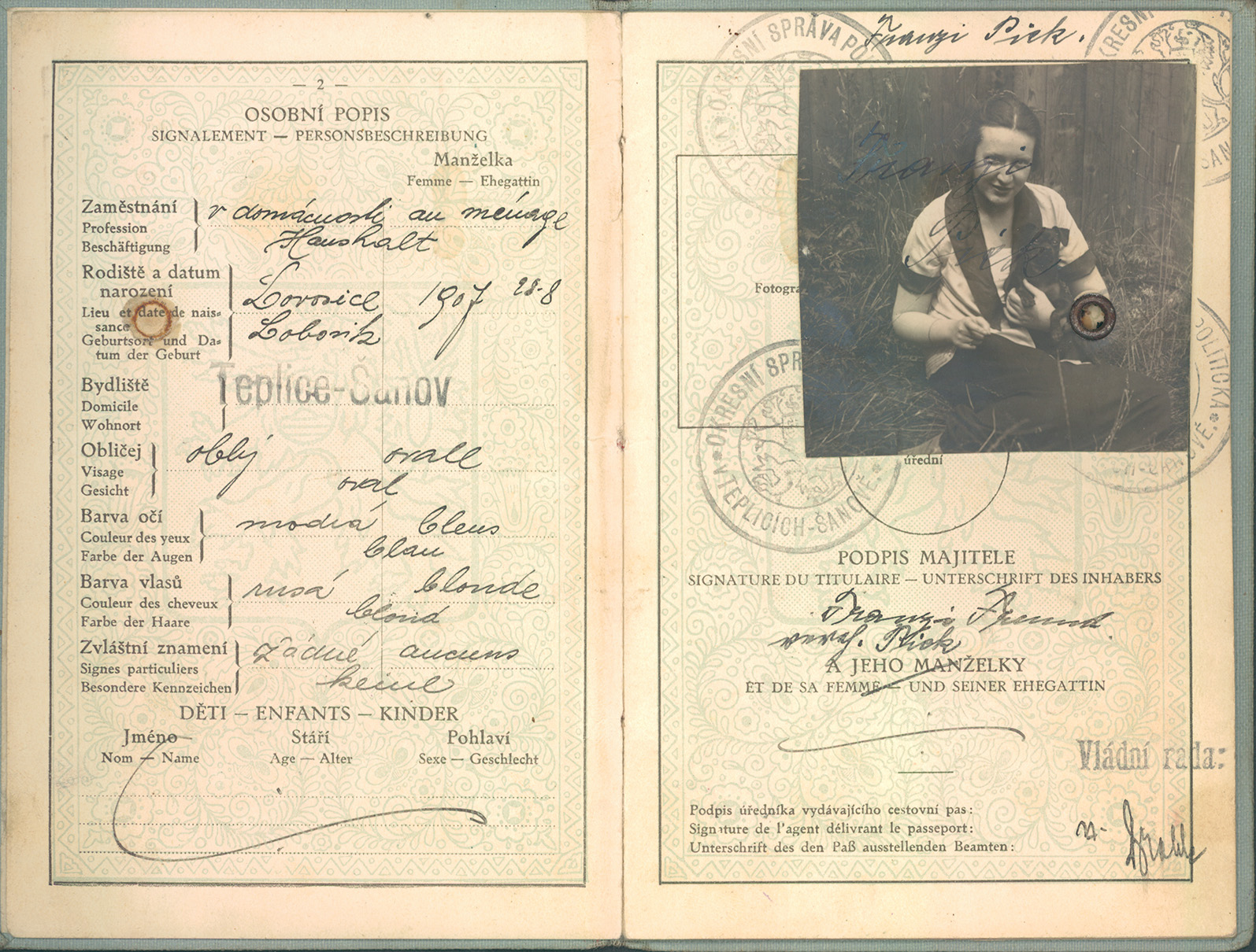 Picková Františka: Cestovní pas