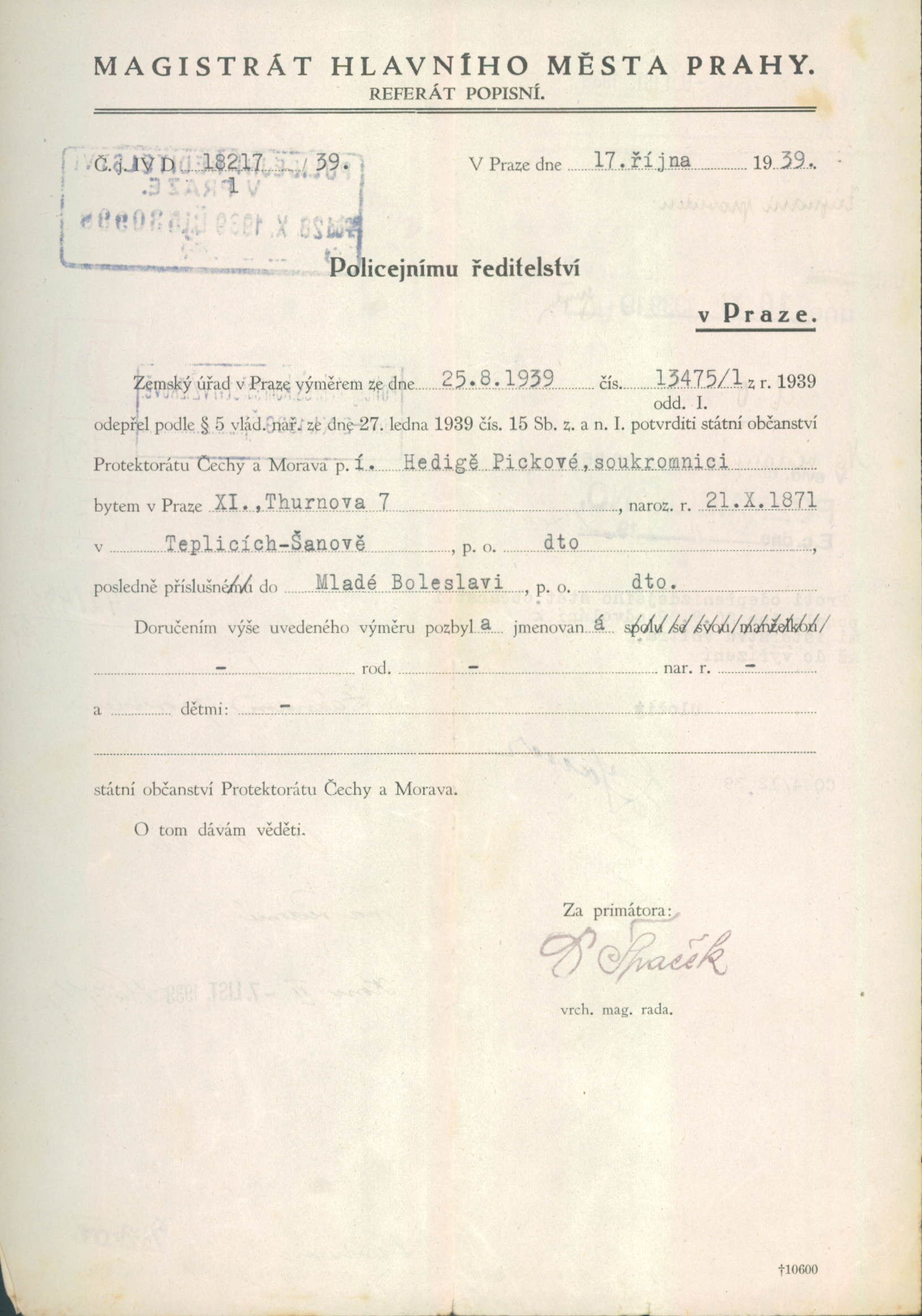 Picková Hedvika: Ztráta státního občanství