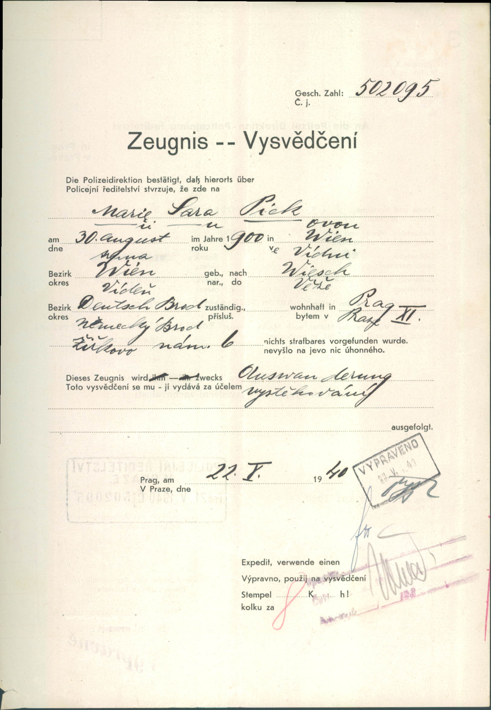 This database contains the names and fates of those who were deported from the territory of today’s Czech Republic, be it their homeland or may they have been deported to the Theresienstadt ghetto before from different european countries. Further, it contains basic information on those men, women and children, most of whom were Roma or Sinti, who died as prisoners of the so-called „Gypsy camp I“ Lety u Písku.
