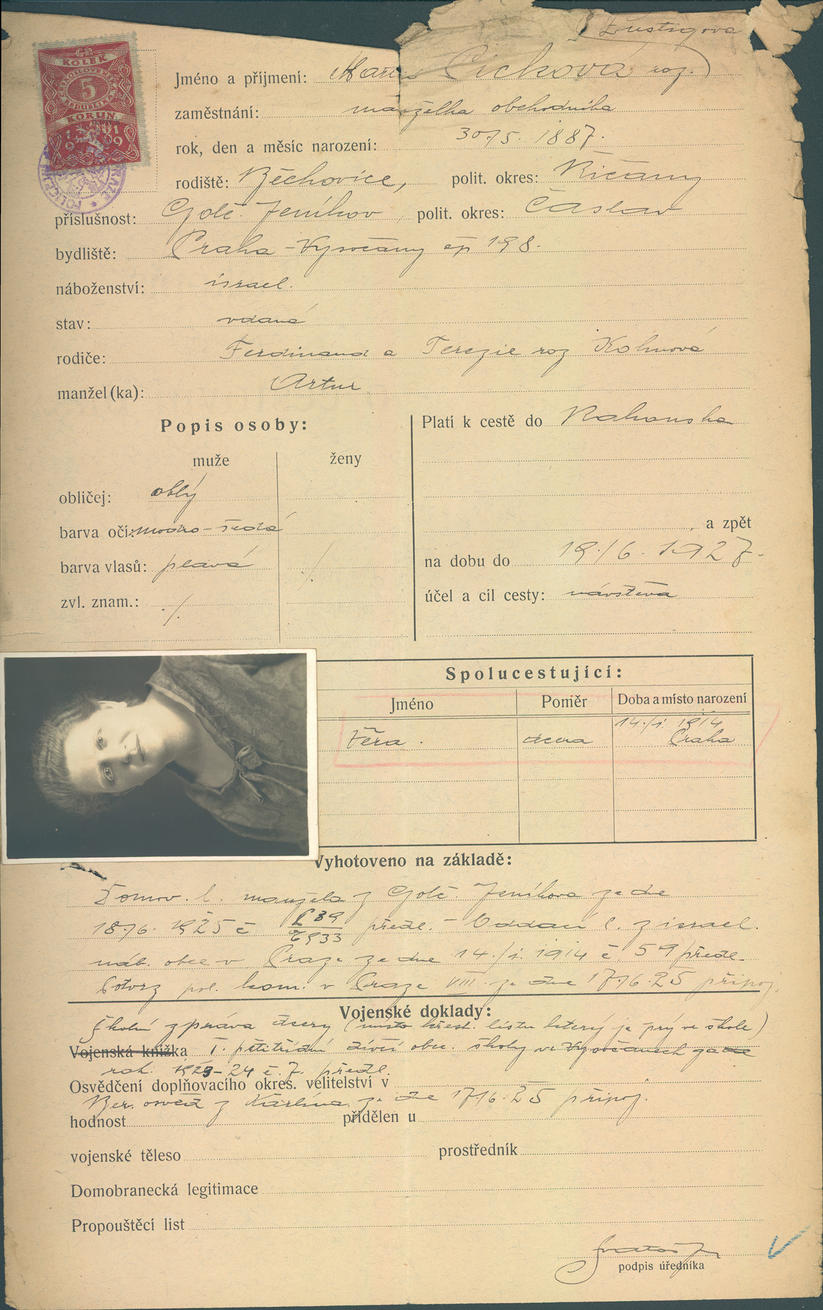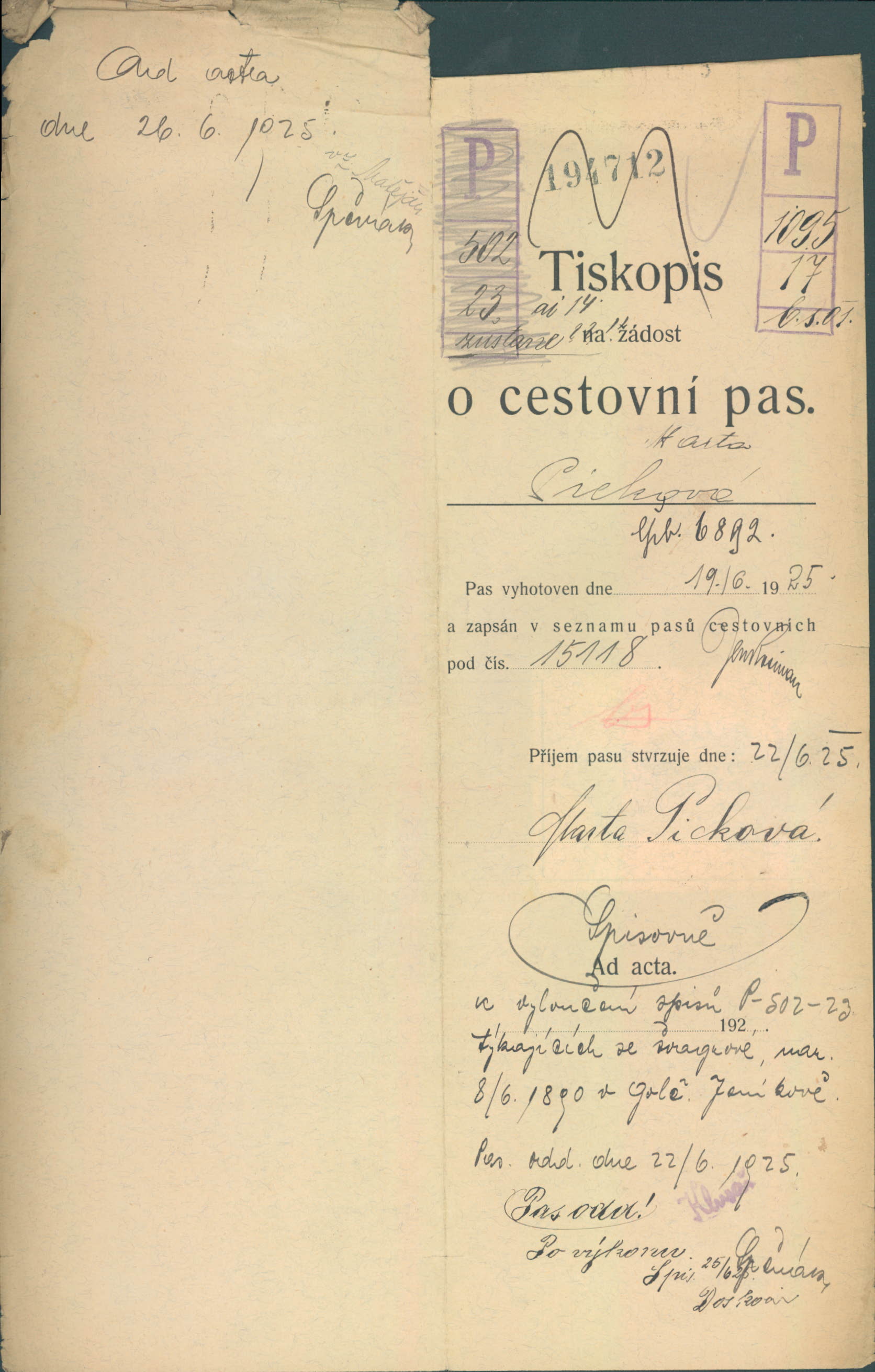 Picková Marta: Žádost o vydání cestovního pasu