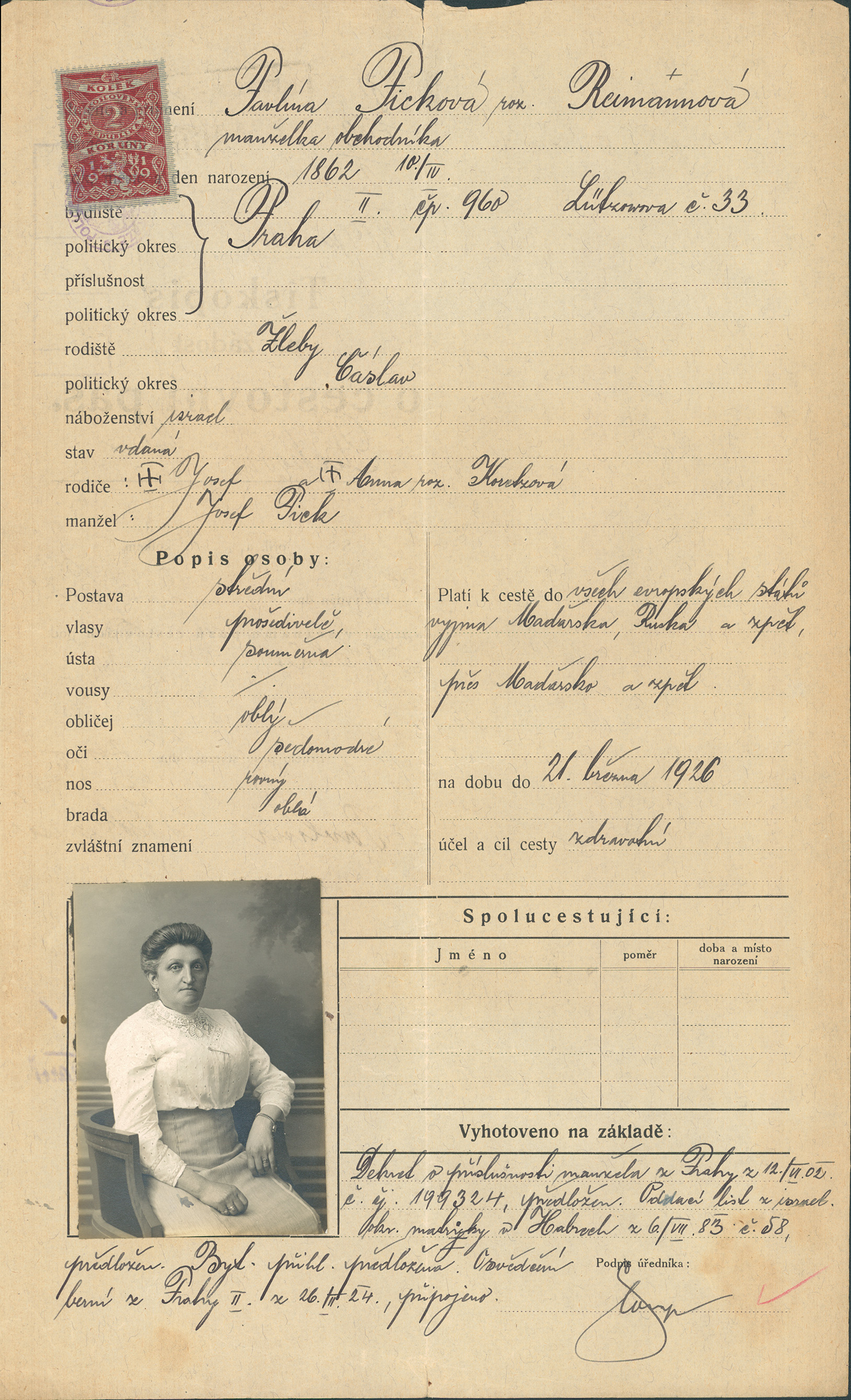 Picková Pavlína: Žádost o vydán cestovního pasu
