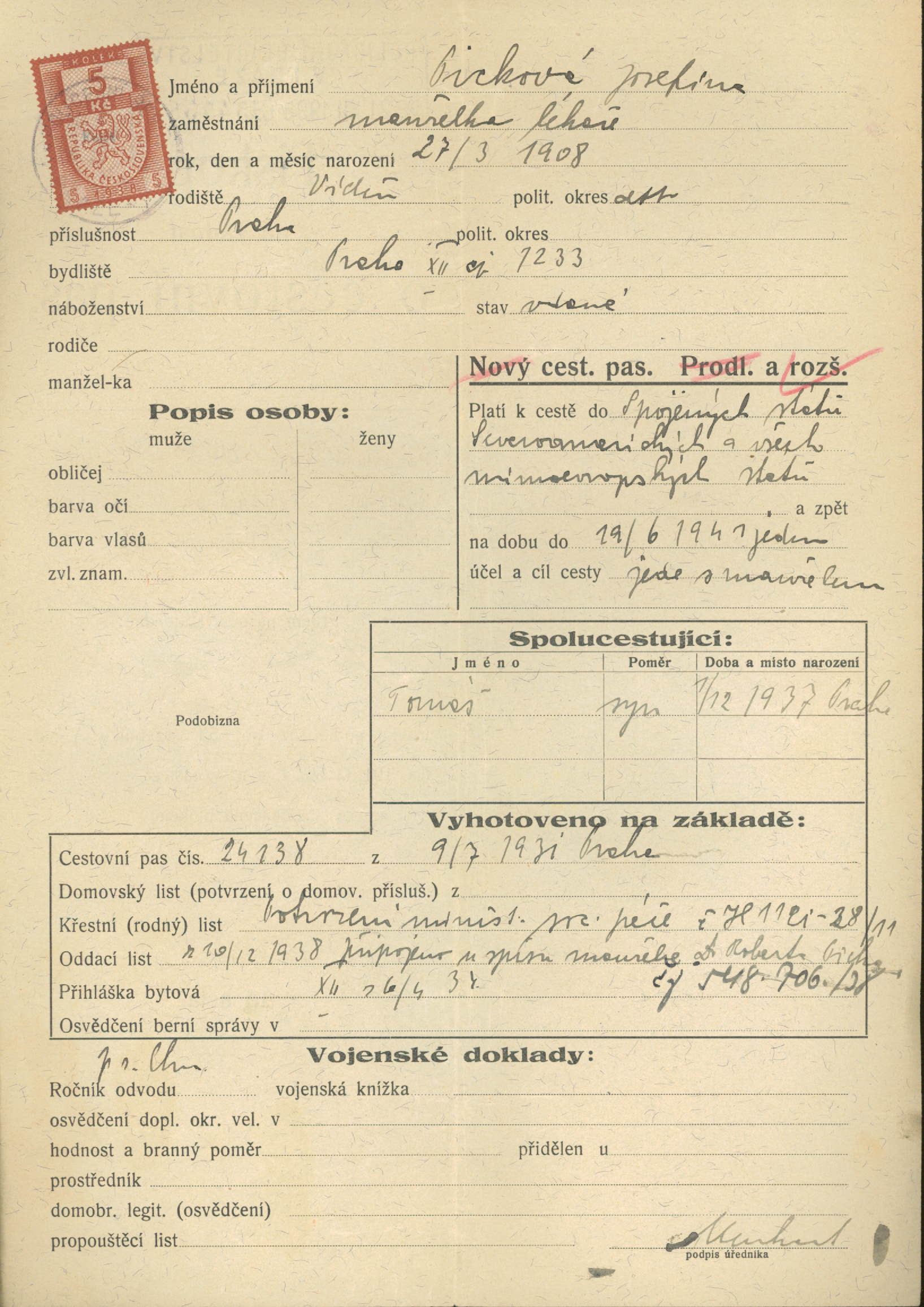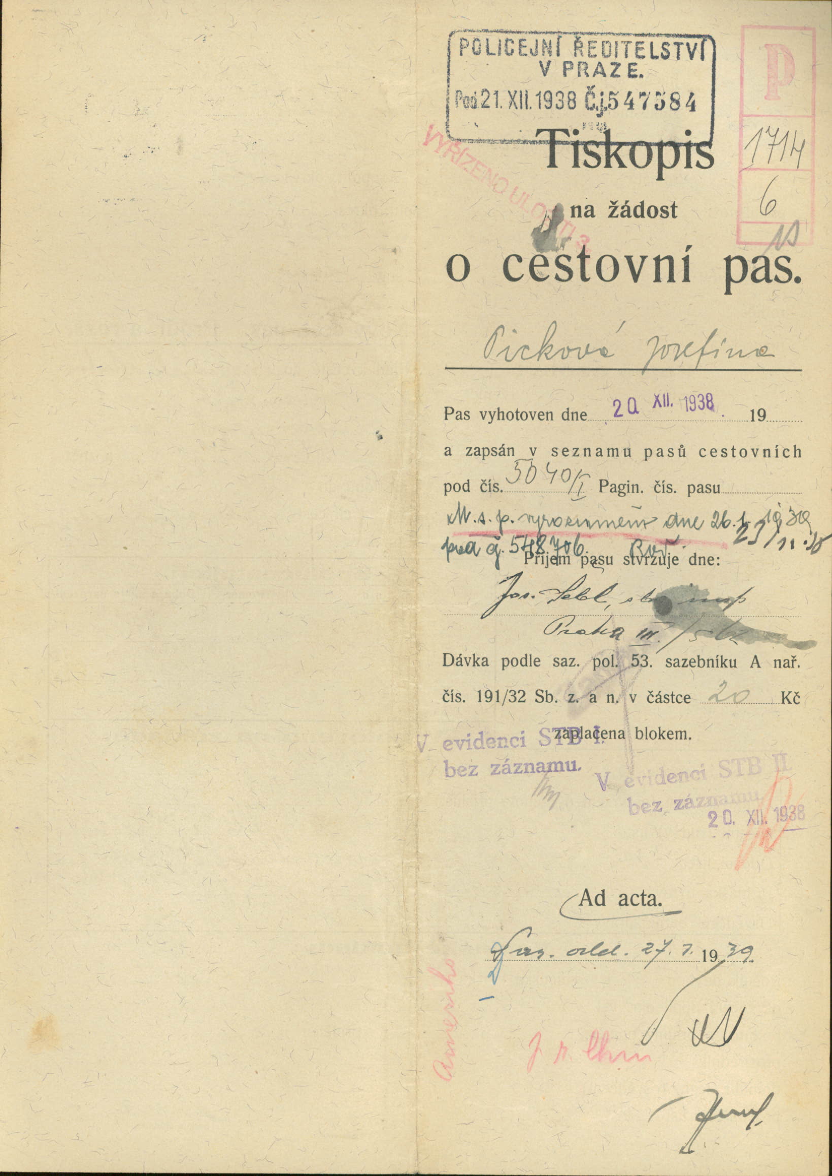 Picková Josefa: Žádost o rozšíření cestovního pasu