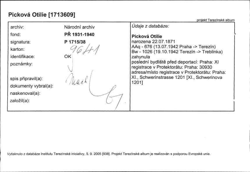 Picková Otilie: NEZPRACOVÁNO