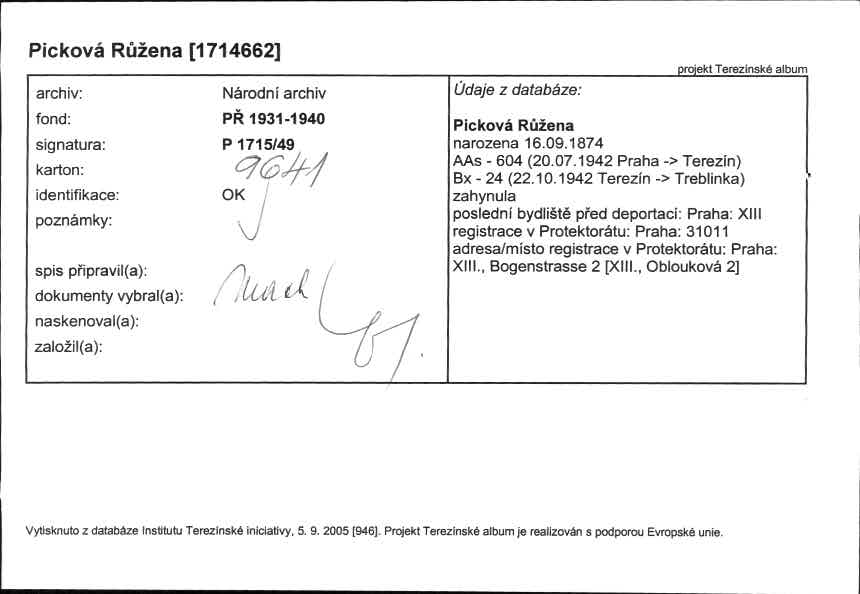 Picková Růžena: NEZPRACOVÁNO