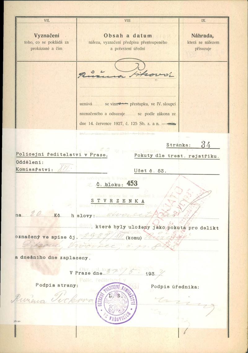 Picková Růžena: NEZPRACOVÁNO