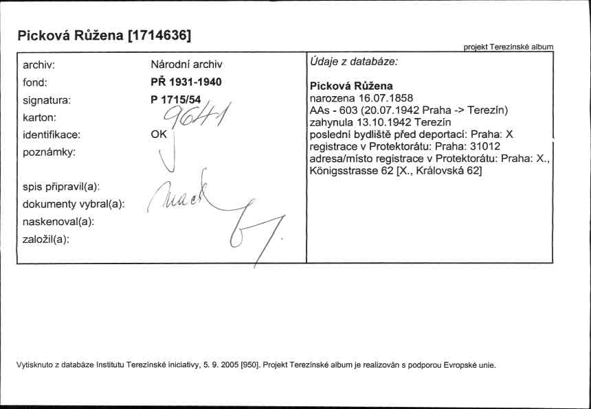 Picková Růžena: NEZPRACOVÁNO
