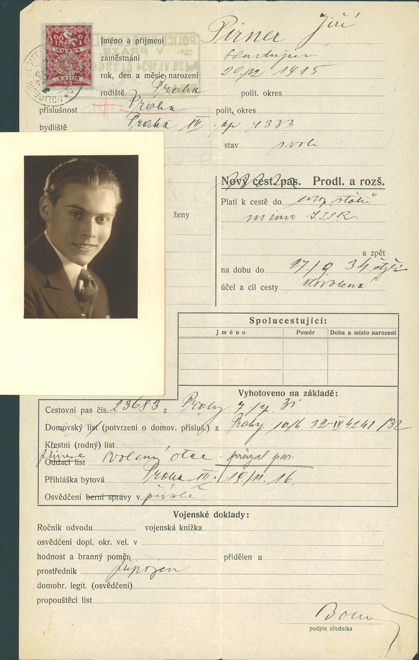 Pirner Jiří: Žádost o prodloužení a rozšíření cestovního pasu
