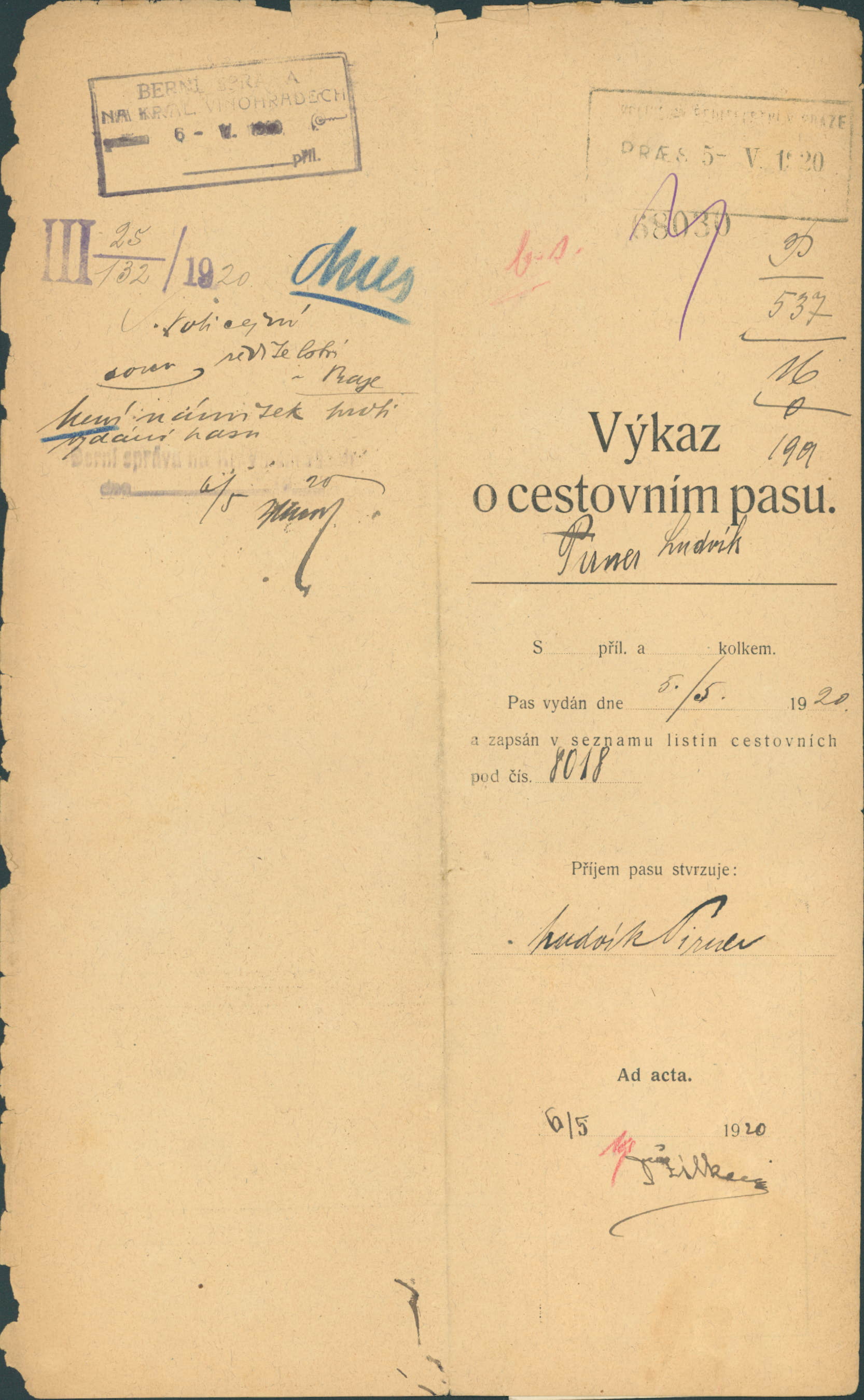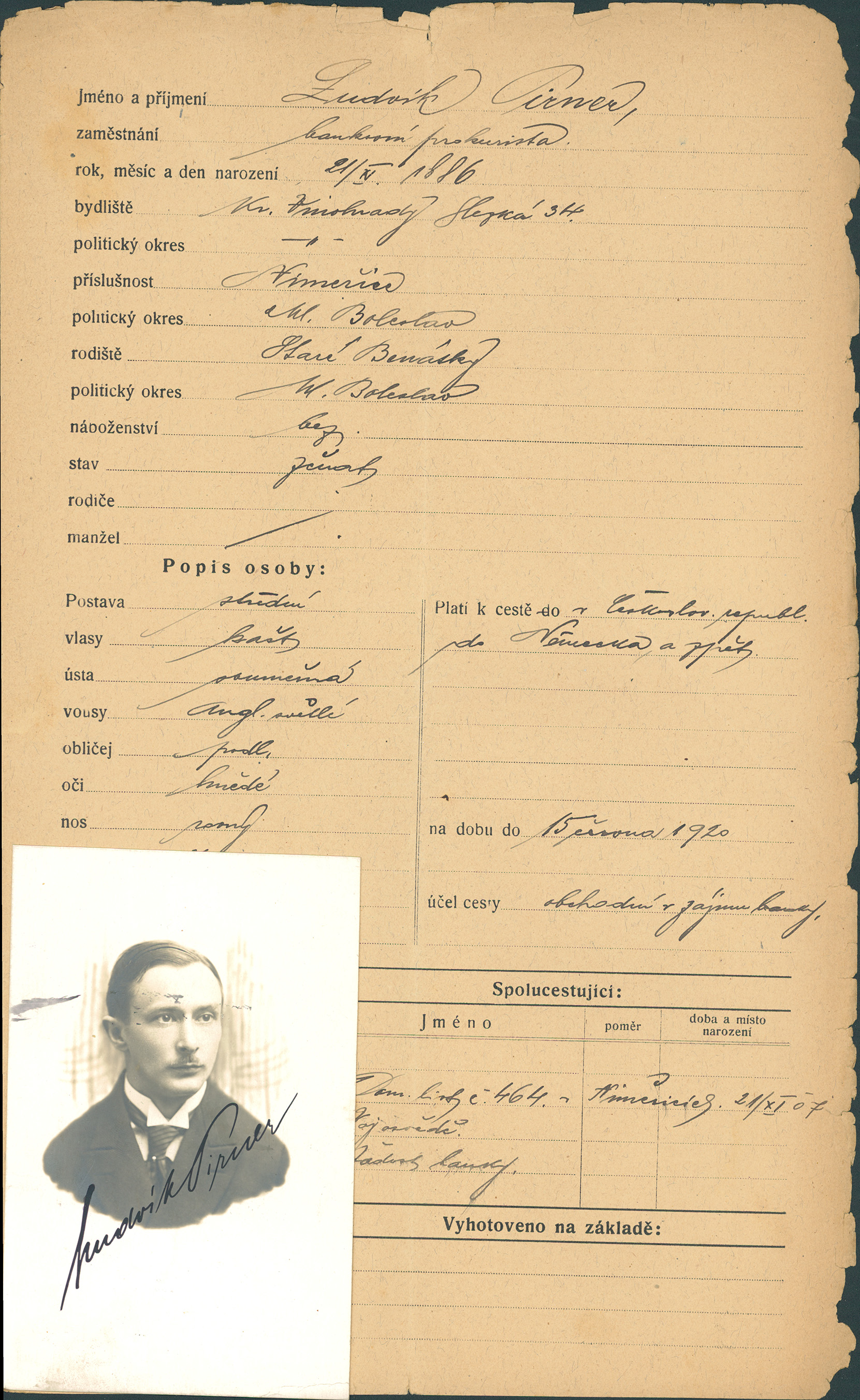 Pirner Ludvík: Žádost o vydání cestovního pasu
