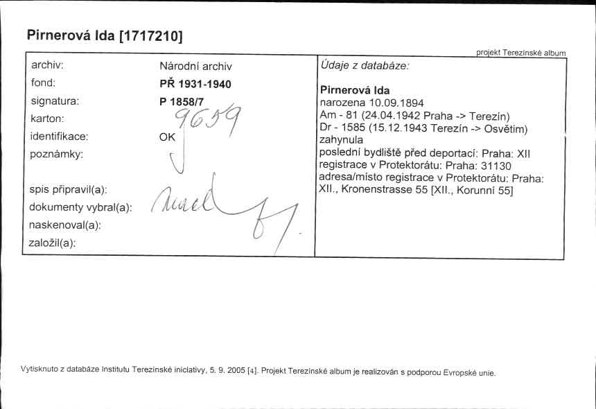This database contains the names and fates of those who were deported from the territory of today’s Czech Republic, be it their homeland or may they have been deported to the Theresienstadt ghetto before from different european countries. Further, it contains basic information on those men, women and children, most of whom were Roma or Sinti, who died as prisoners of the so-called „Gypsy camp I“ Lety u Písku.