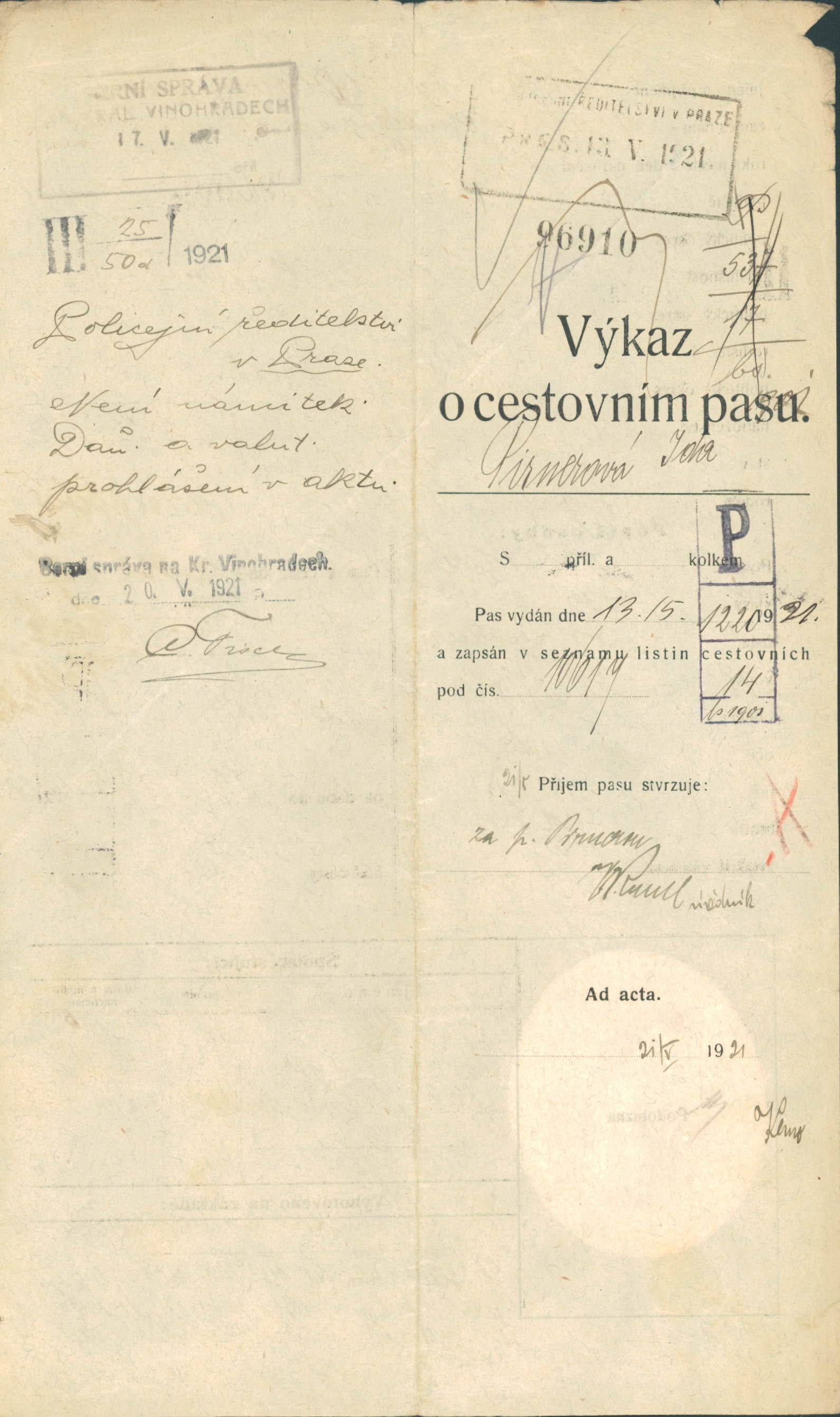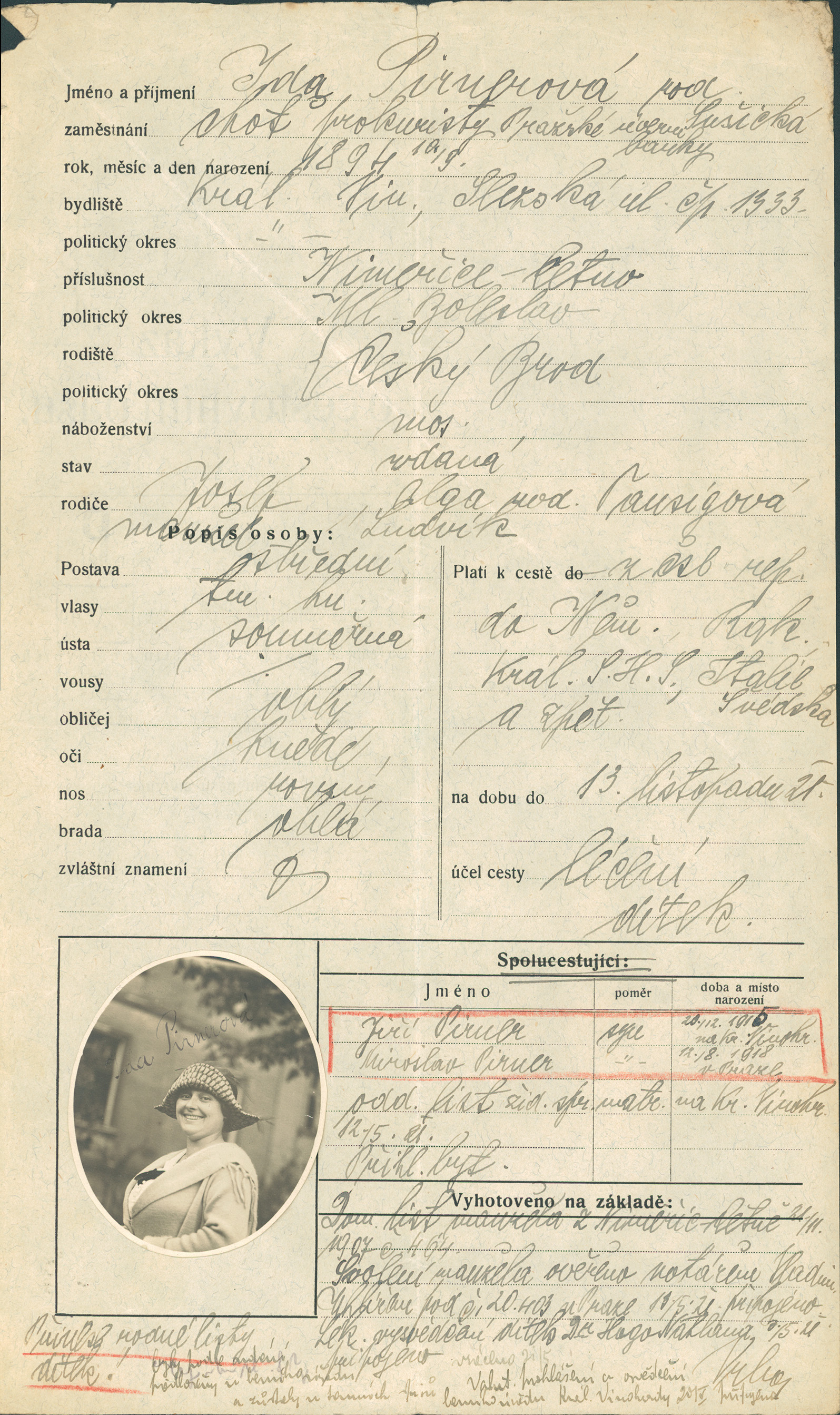 Pirnerová Ida: Žádost o vydání cestovního pasu