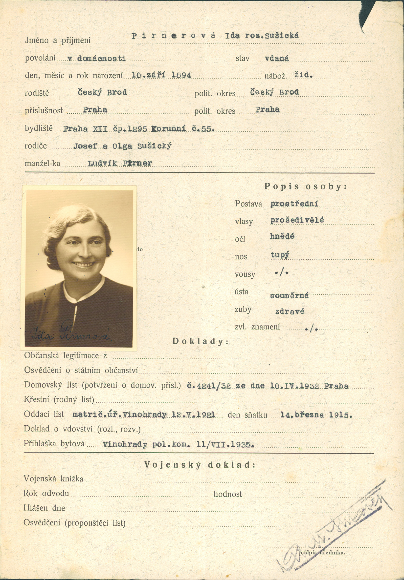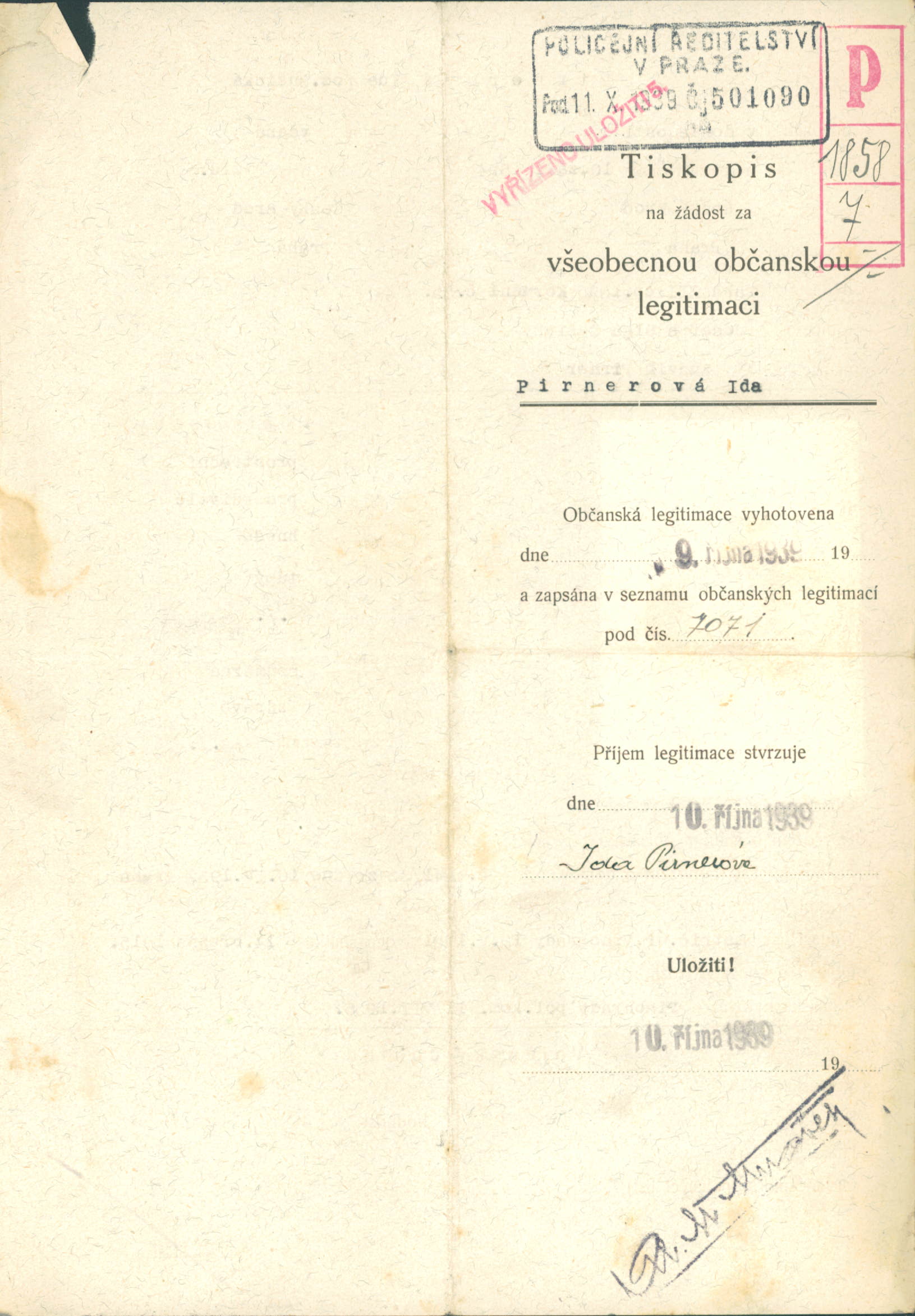 Pirnerová Ida: Žádost o vydání občanské legitimace
