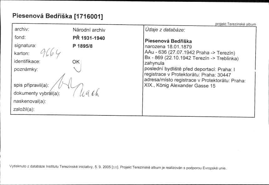 Piesenová Bedřiška: NEZPRACOVÁNO