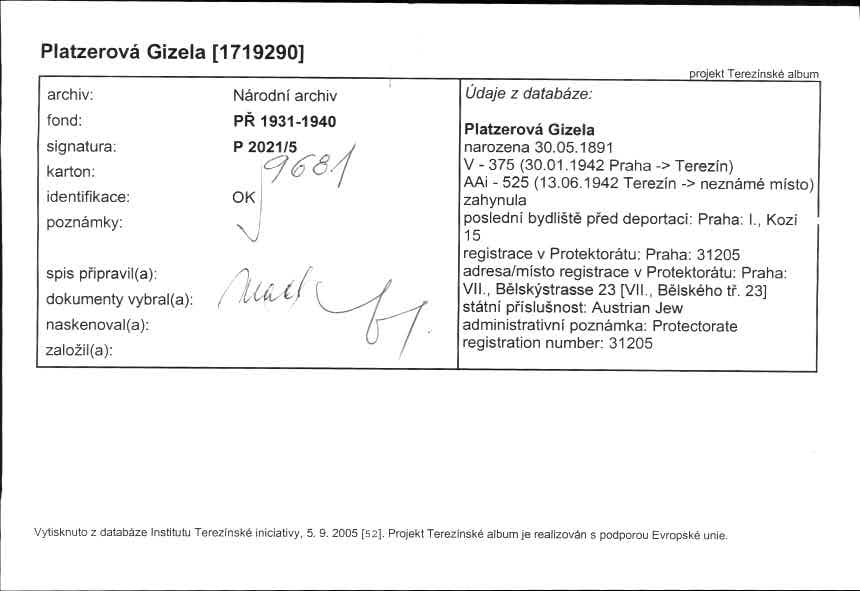 This database contains the names and fates of those who were deported from the territory of today’s Czech Republic, be it their homeland or may they have been deported to the Theresienstadt ghetto before from different european countries. Further, it contains basic information on those men, women and children, most of whom were Roma or Sinti, who died as prisoners of the so-called „Gypsy camp I“ Lety u Písku.