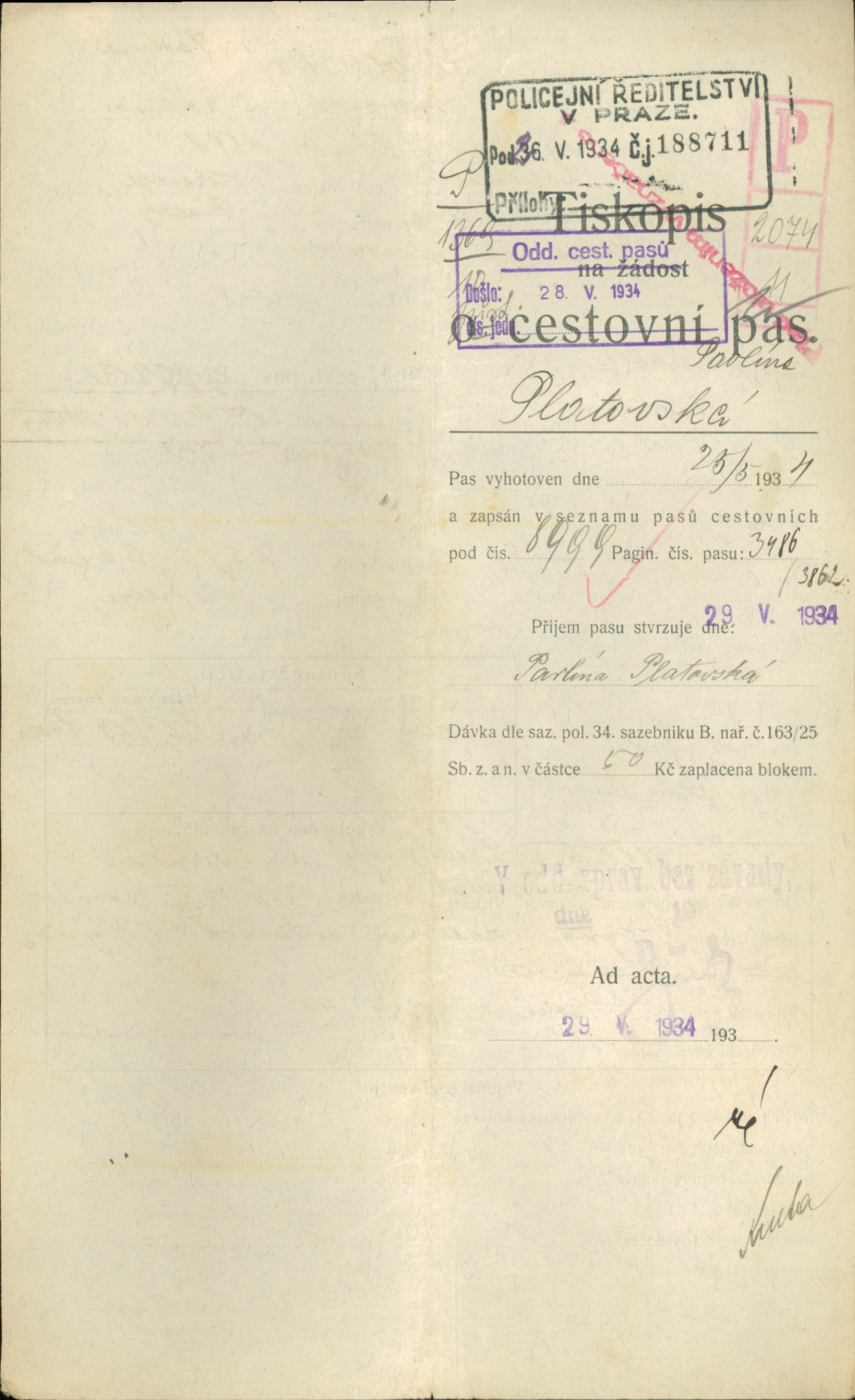 Platovská Pavla: Žádost o vydání cestovního pasu