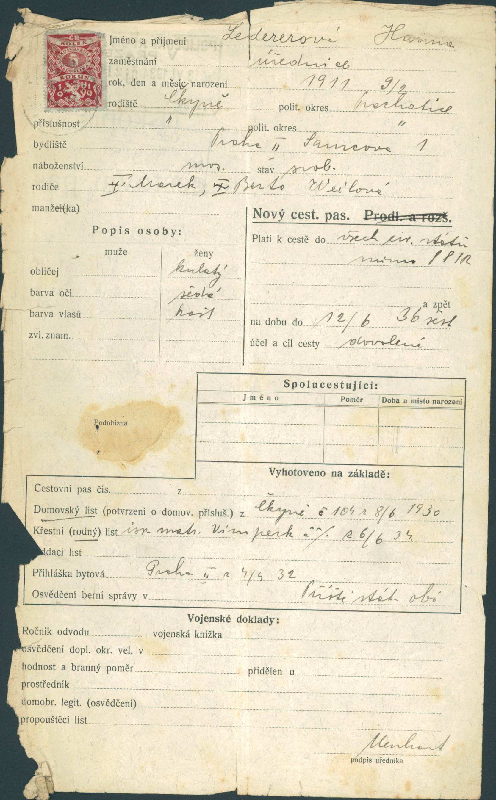 Platovská Hana: Žádost o připsání dítěte do cestovního pasu