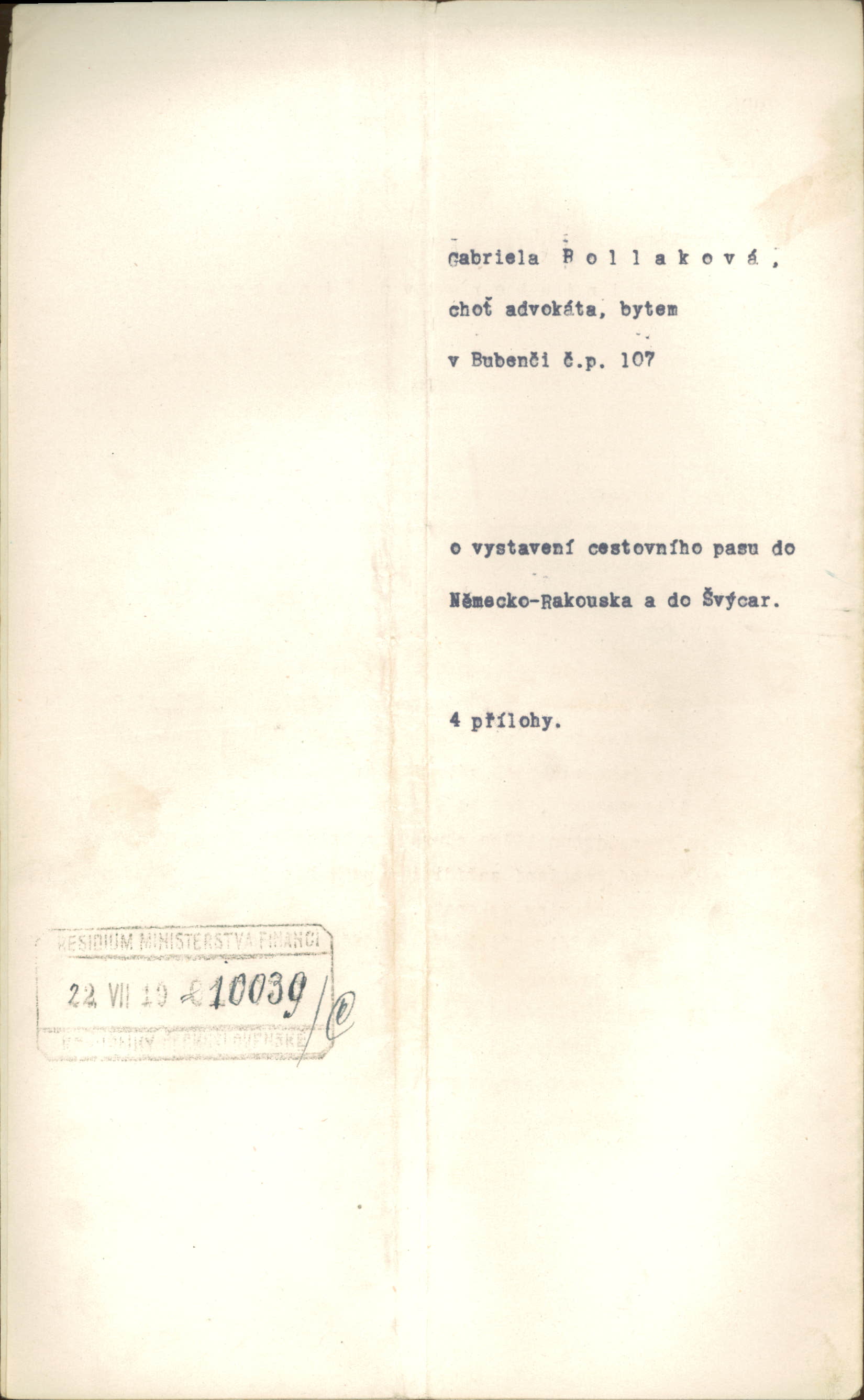 Plessová Gabriela: Žádost o vydání cestovního pasu