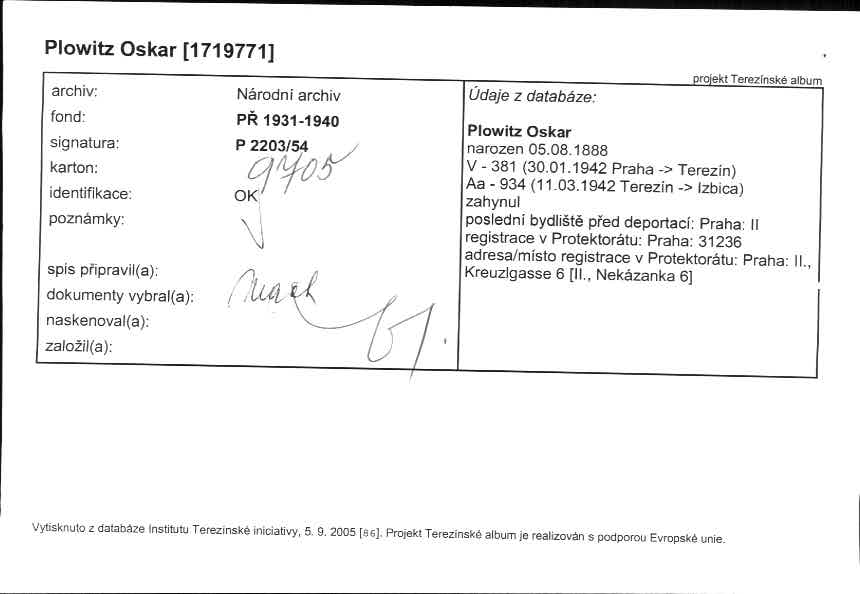 Plowitz Oskar: NEZPRACOVÁNO