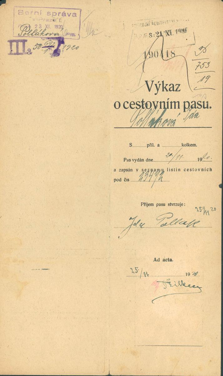 National archives Prague > Police Directorate Prague > 1931-1940 > P > Pollaková Ida