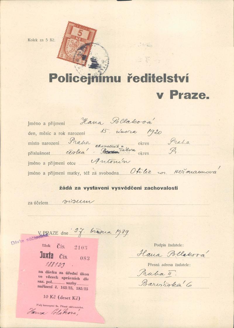 National archives Prague > Police Directorate Prague > 1931-1940 > P > Pollaková Hana